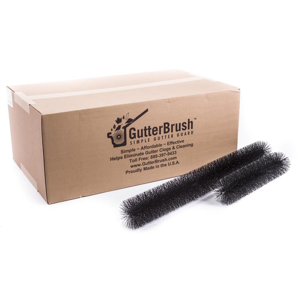 The best gutter guard solutions keep gutters flowing, are simple to install, accept maximum water volume and don't interfere with existing roof or gutter system. Since 2004 GutterBrush Leaf Guard has been protecting residential and commercial gutters with a unique cylinder shaped brush filling gutters with stiff bristles that block leaves and debris while drawing maximum water into the gutter. The simple concept of filling the gutter with this universal fit, modern solution makes it quick and easy for anyone to install. No complicated measuring, cutting, fasteners, or holes typically found with many gutter covers and screens. Just insert 3 ft. sections of GutterBrush end to end filling the entire gutter for effective year round protection. Many customers proclaim Why Didn't I Think Of That. The innovative cylindrical design creates a raised bristle profile that pulls water inward while directing leaves and debris over the gutter edge. Many flat top gutter guards result in heavy rain bypassing the gutter. Stiff black bristles stop birds and pests from nesting and improve winter performance by preventing slush from flowing to clog downspouts. Constructed from durable UV protected polypropylene bristles and a heavy-gauge galvanized steel wire core. 5 Sizes: Small 4 in. Specialty Gutters Standard 5 in. Residential Gutters (Most Common) Oversize 6 in. Residential Gutters Commercial 7 in. Gutters Industrial 8 in. Gutters.