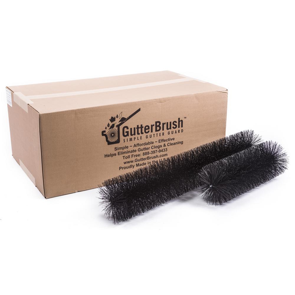 The best gutter guard solutions keep gutters flowing, are simple to install, accept maximum water volume and don't interfere with existing roof or gutter system. Since 2004 GutterBrush Leaf Guard has been protecting residential and commercial gutters with a unique cylinder shaped brush filling gutters with stiff bristles that block leaves and debris while drawing maximum water into the gutter. The simple concept of filling the gutter with this universal fit, modern solution makes it quick and easy for anyone to install. No complicated measuring, cutting, fasteners, or holes typically found with many gutter covers and screens. Just insert 3 ft. sections of GutterBrush end to end filling the entire gutter for effective year round protection. Many customers proclaim Why Didn't I Think Of That. The innovative cylindrical design creates a raised bristle profile that pulls water inward while directing leaves and debris over the gutter edge. Many flat top gutter guards result in heavy rain bypassing the gutter. Stiff black bristles stop birds and pests from nesting and improve winter performance by preventing slush from flowing to clog downspouts. Constructed from durable UV protected polypropylene bristles and a heavy-gauge galvanized steel wire core. 5 Sizes: Small 4 in. Specialty Gutters Standard 5 in. Residential Gutters (Most Common) Oversize 6 in. Residential Gutters Commercial 7 in. Gutters Industrial 8 in. Gutters.