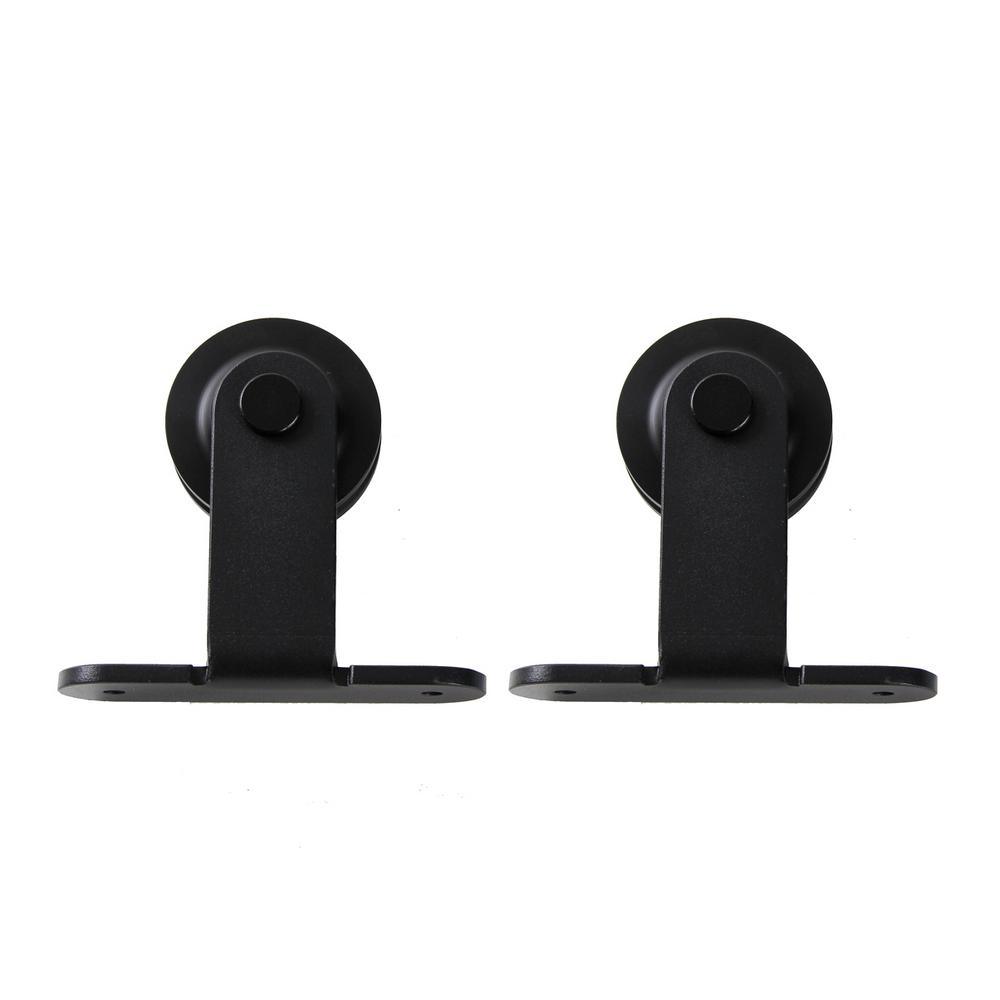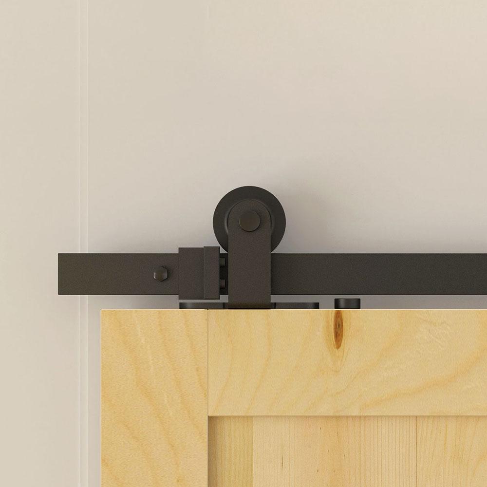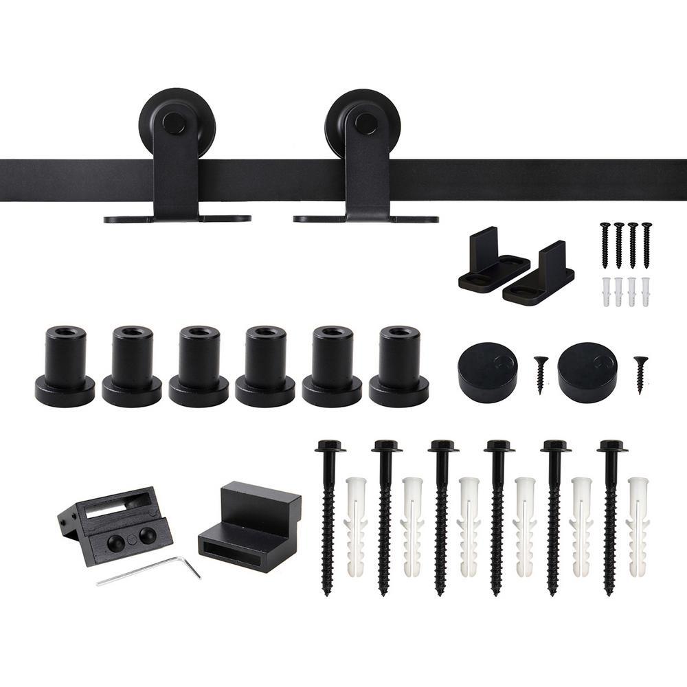 7.5 ft./90 in. Top Mount Sliding Barn Door Hardware Track Kit for Single Door with Non-Routed Floor Guide Frosted Black