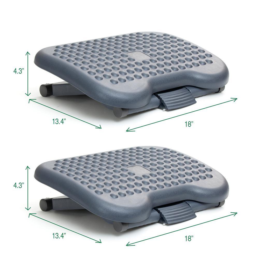 You'll wish you had treated yourself to a Mind Reader Leg-Lifting Footrests, Back Supports for your office Chair, Padded Arm Rests, Posture Supports and Foot Health Items a long time ago once you add them to your daily health promoting regiment at work and at home. ERGONOMIC ADJUSTABLE ANGLED FOOT REST SET: Improve leg circulation with the Mind Reader adjustable massage surface device that lifts and angles your legs, feet, knees and ankles to a position that reduces stress on the body - improve back and neck pain while you sit at work or at home - slight swivel adds flexibility while you sit or massage feet. INCREASE LEG & BACK COMFORT WHILE SITTING: Proper posture and sitting position are key to overall comfort - making sure your legs and feet are positioned comfortably while you work or while sitting at home allows you to maintain overall comfort throughout the day. ONE FOR HOME AND ONE FOR OFFICE: This value pack offers two footrests to ensure you are comfortable at home, at work or away at college - look for simple inexpensive ways to reduce pain created by sitting for long periods of time by creating your most optimal sitting posture. FOOT