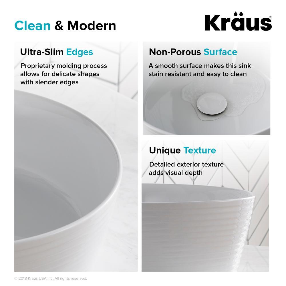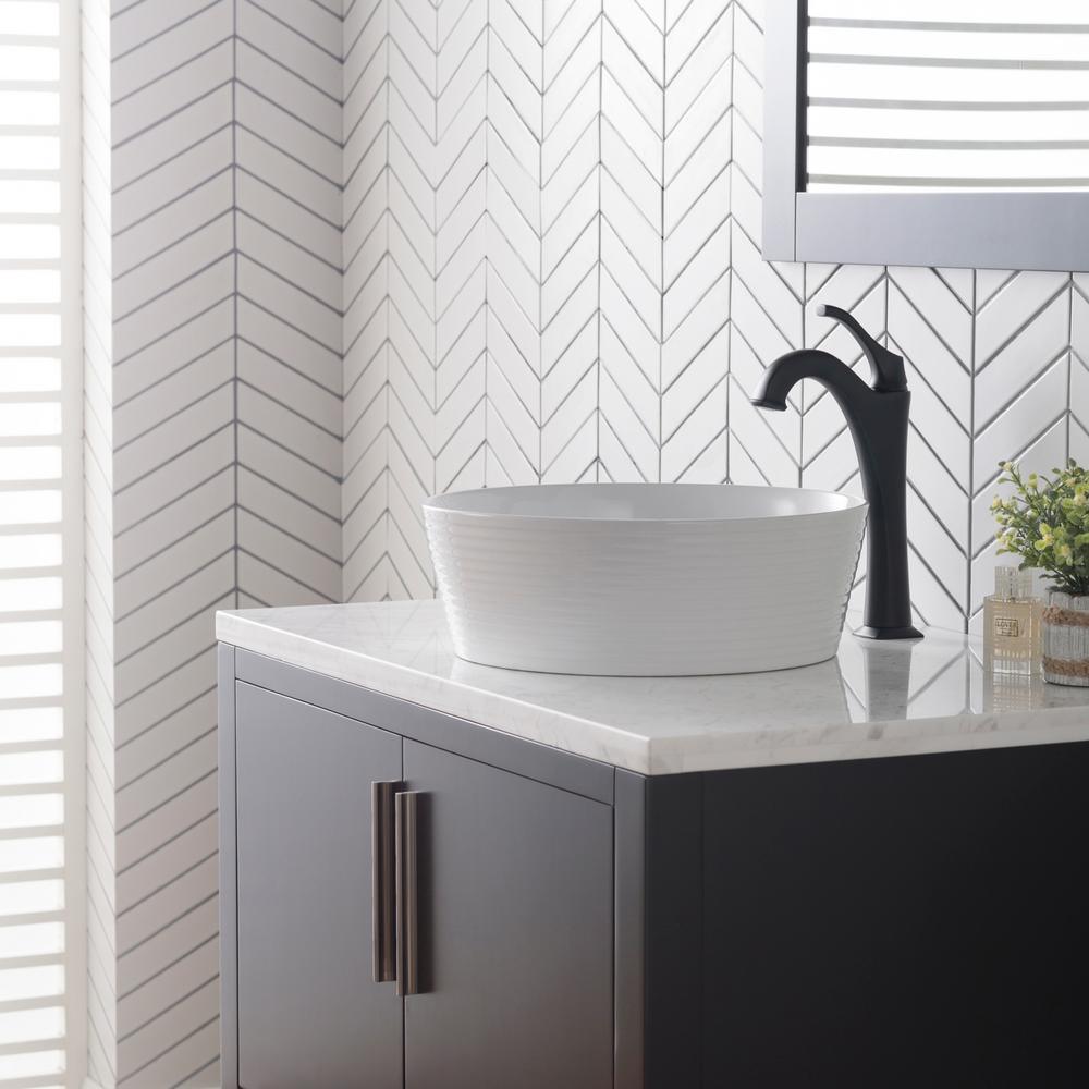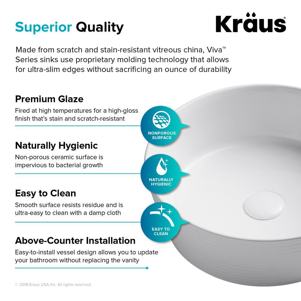 An essential collection of light and simple shapes with minimalist design elements, the Viva Series features sinks made from high-tech vitreous china using a proprietary molding process that allows for ultra-slim edges without sacrificing an ounce of durability. Slender silhouettes and textured exteriors create a light and airy look thats refreshingly modern and perfect for any size of bathroom. The naturally hygienic non-porous ceramic surface is impervious to bacterial growth, and is fired at high temperatures for a high-gloss finish thats scratch and stain-resistant. Easy above counter installation allows you to update your bathroom sink without replacing the entire vanity. Available in a selection of on-trend colors to complement any decor, from classic white to subtle neutrals to bold modern black.