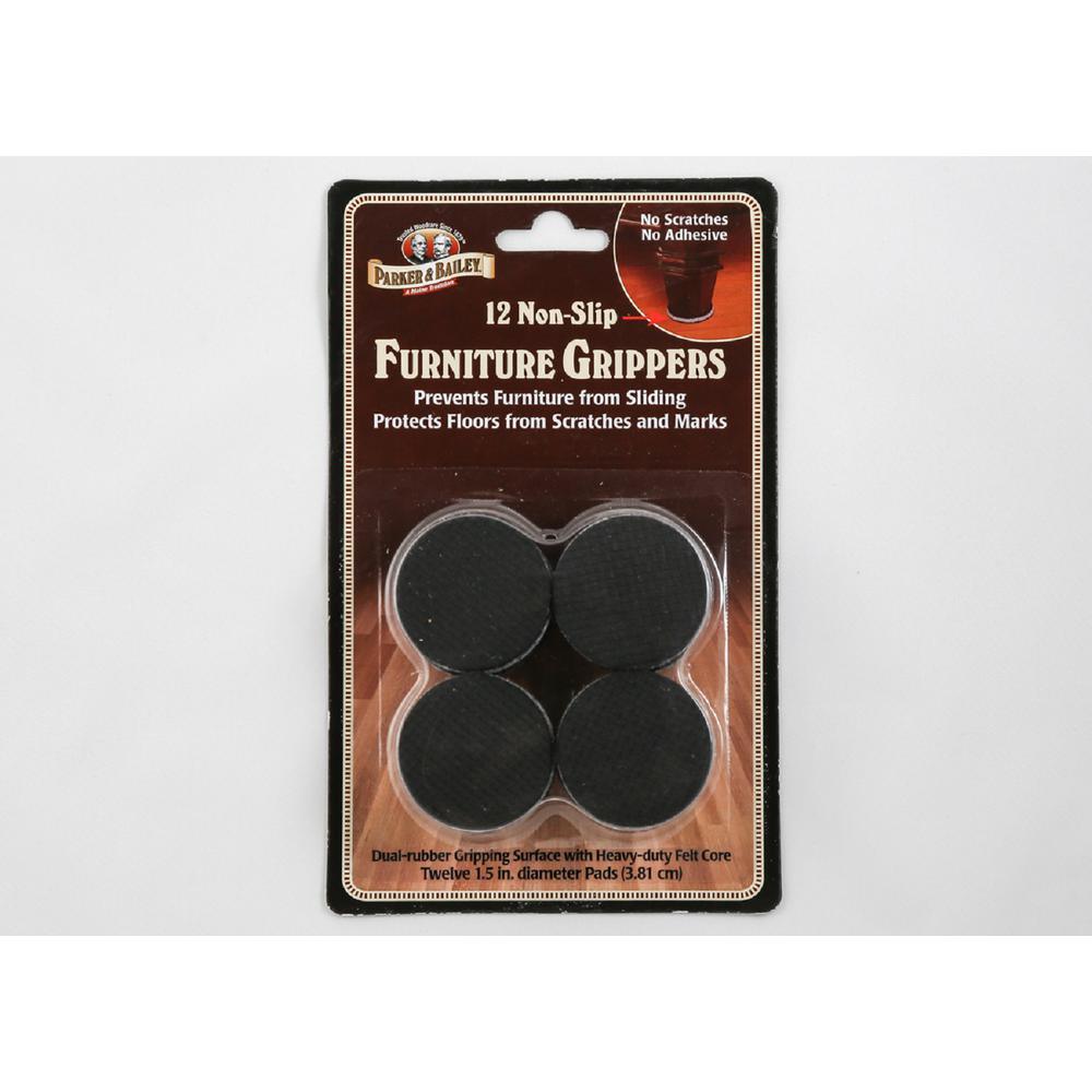 The Parker and Bailey Furniture Grippers contain 12-Pieces of dual-rubber pads with heavy-duty felt core. The Furniture Grippers prevent furniture from sliding and protect floors from scratches and marks. The gripper pads are 1.5 in. Dia.