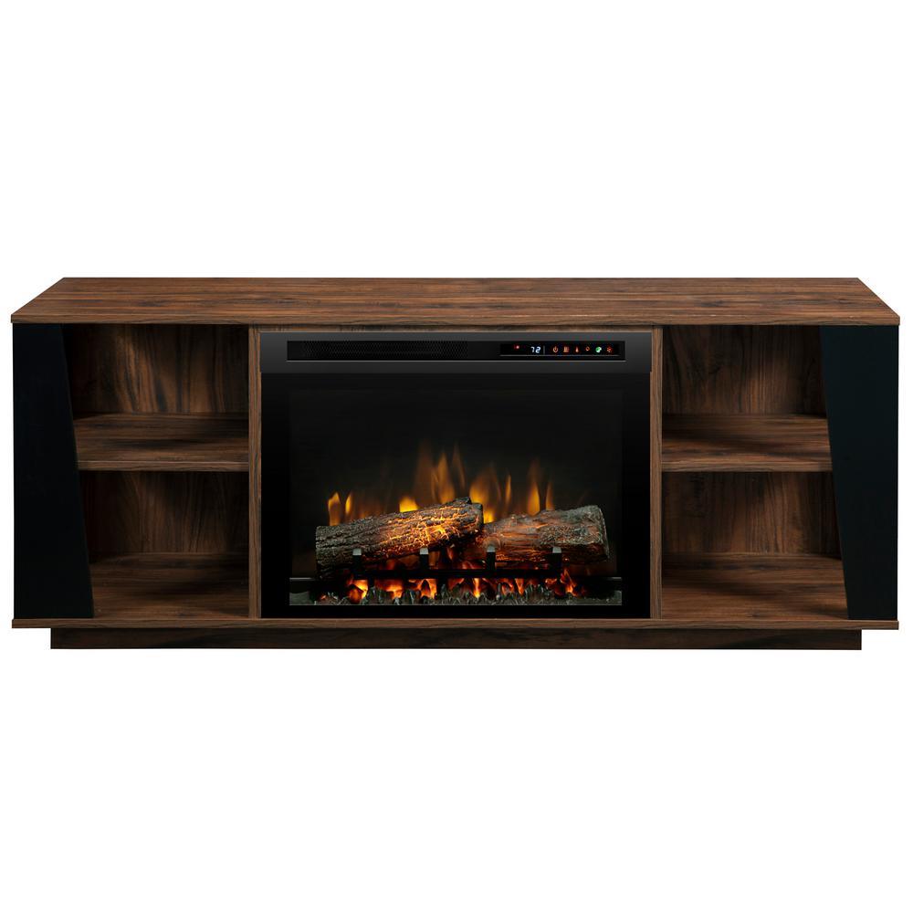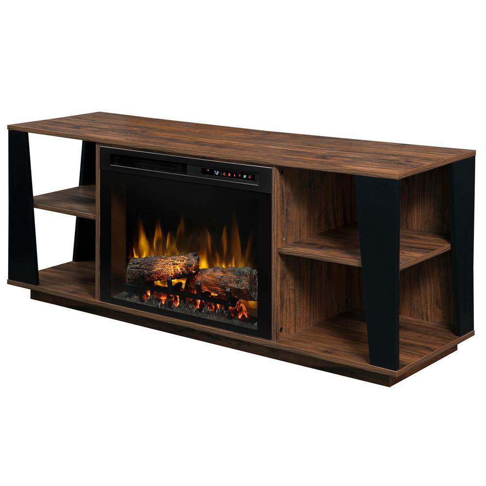 Clean lines and stark contrasts make up the low-profile design of the Arlo Television Stand. Supporting a flat screen television up to 55 in., this stand is ideal for smaller, modern or industrial spaces. Finished in a natural Tan Walnut finish, with the appearance of true wood grain, Arlo brings a rustic appearance into an industrial-chic design. Compatible with a 26 Dimplex Electric Fireplace, Arlo stunningly displays a traditional or contemporary look with either an acrylic ice or inner-glow log media bed. Sporting dual open cabinets, each with a single, adjustable shelf, the Arlo Electric Fireplace has an abundance of space for all your decor or media needs.