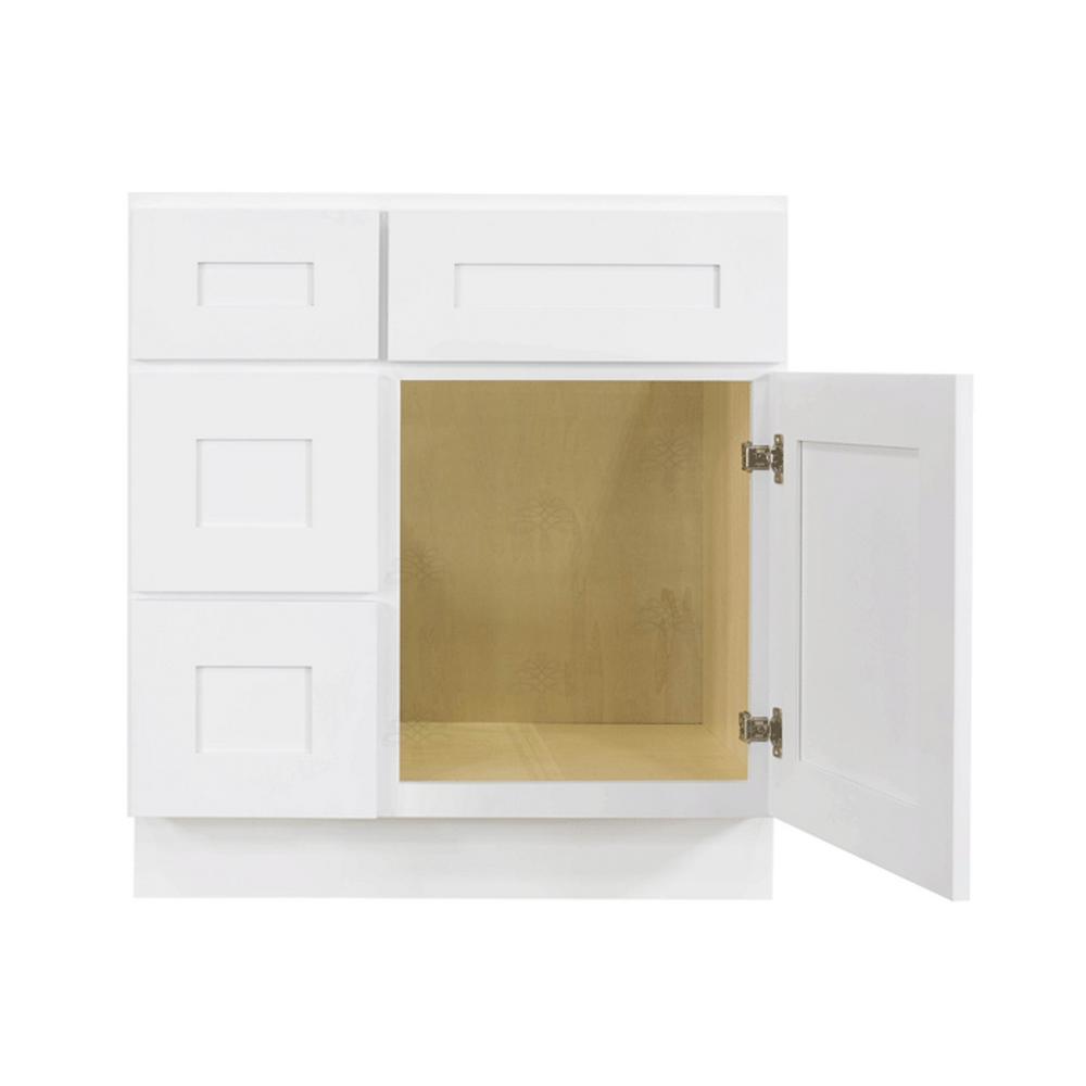 Lancaster Shaker Assembled 30 in. W x 21 in. D x 32.5 in. H Bath Vanity Sink Base Cabinet with 2 Left Drawers in White