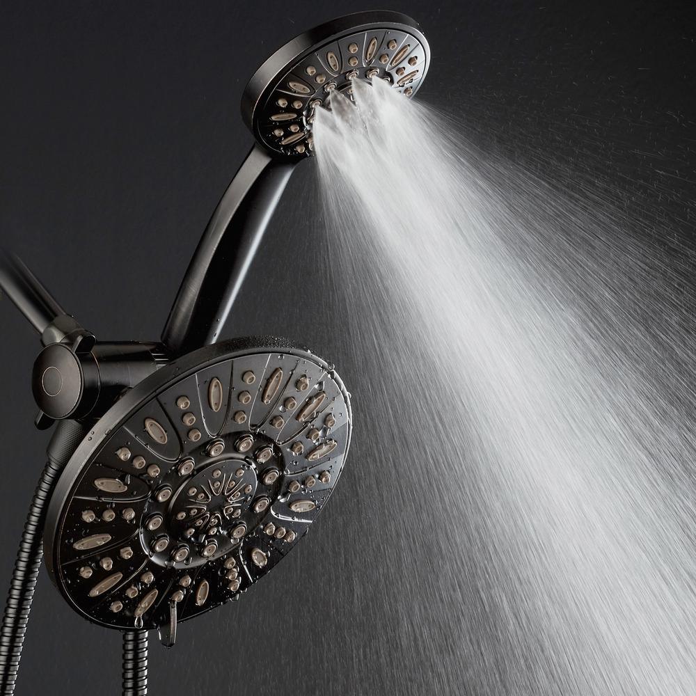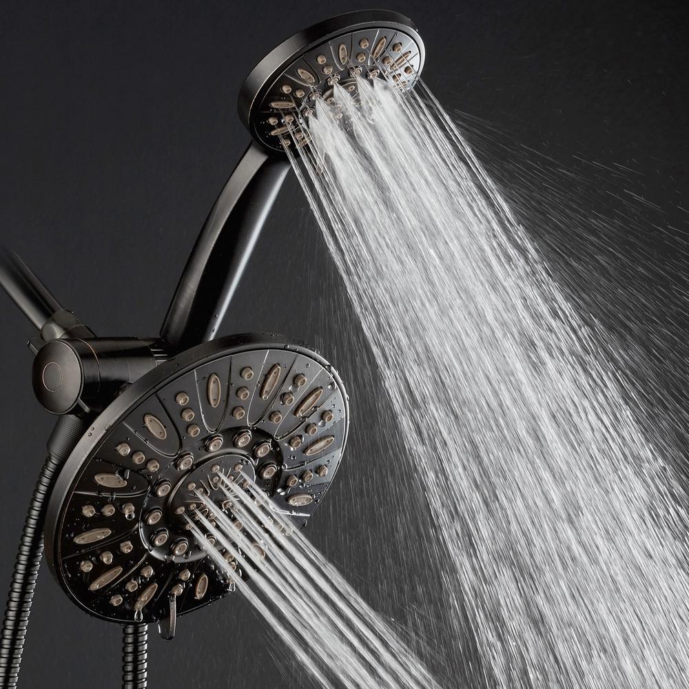 This ultra-luxury high-pressure shower combo from a top-selling American brand offers the ultimate in spa pampering and convenience. Enjoy a giant 6-setting 7 in. rainfall shower head and matching 6-setting hand shower separately or together for your best shower ever. This luxury showerhead Includes convenient water-saving Pause mode, patented 3-way water diverter and extra-long 72 in. hose for added reach and mobility. A high end Oil Rubbed Bronze finish highlights this fabulous shower system.
