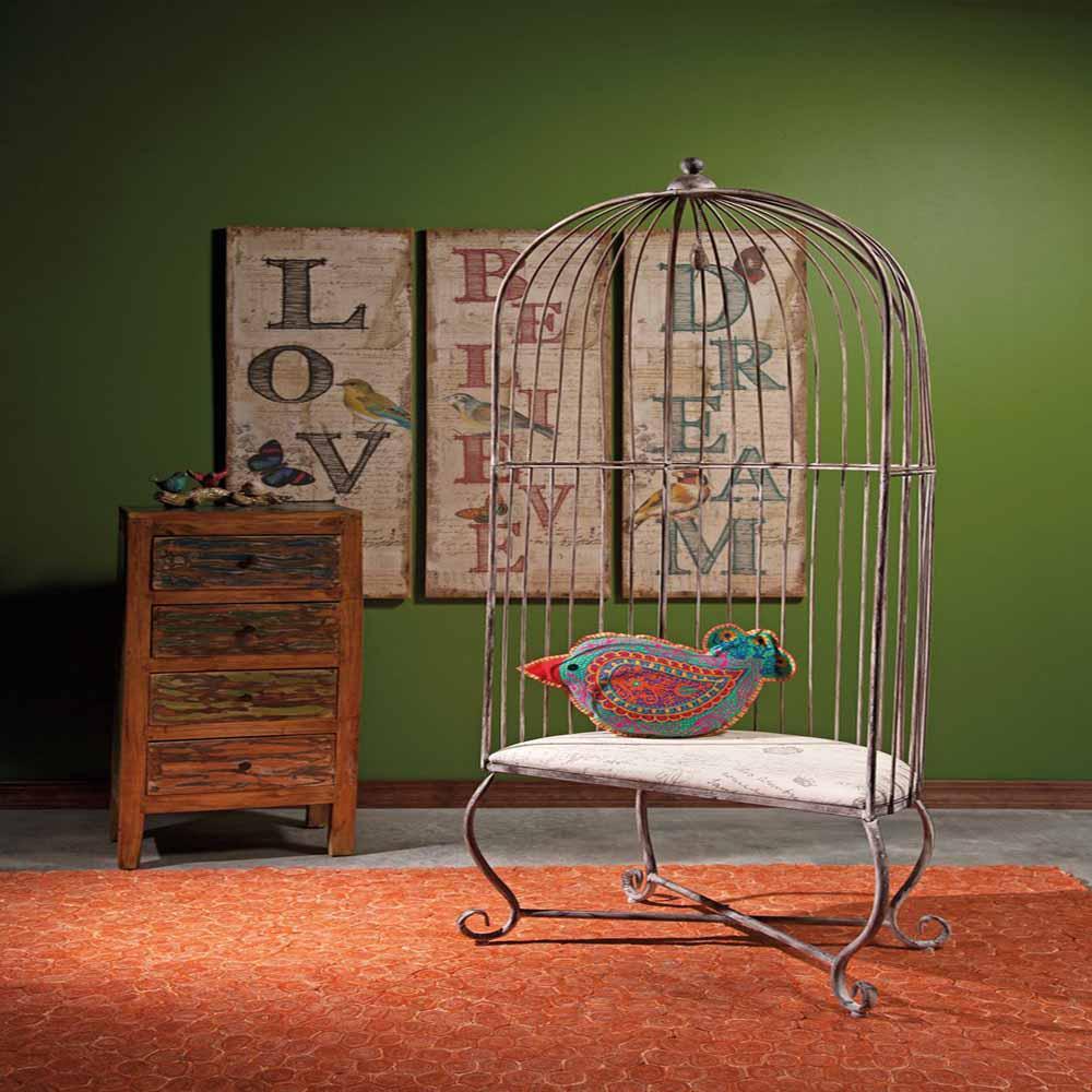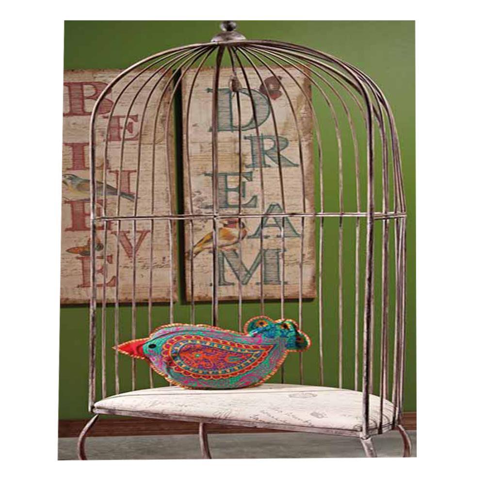 She's only a bird in a gilded cage or she will be when seated in this birdcage-shaped accent chair. Rendered in iron and linen, it features a cushioned seat finished in toile upholstery. This unique accent chair looks great in a range of settings.