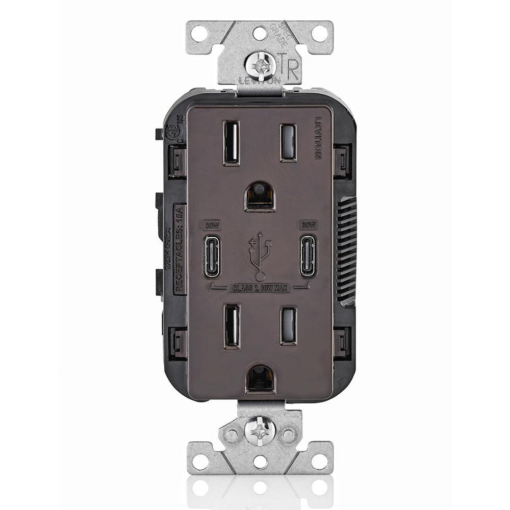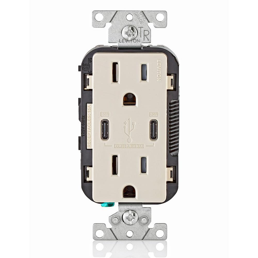 15 Amp 125-Volt Tamper-Resistant Duplex Outlet/30-Watt 6 Amp USB Dual Type-C with Power Delivery In-Wall Charger, White