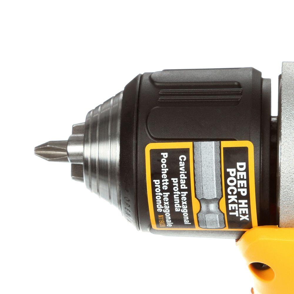 • 3/8 in. ratcheting chuck with deep hex pocket allows 2 in. (50 mm) hex bit to be fully inserted for access into tight spaces