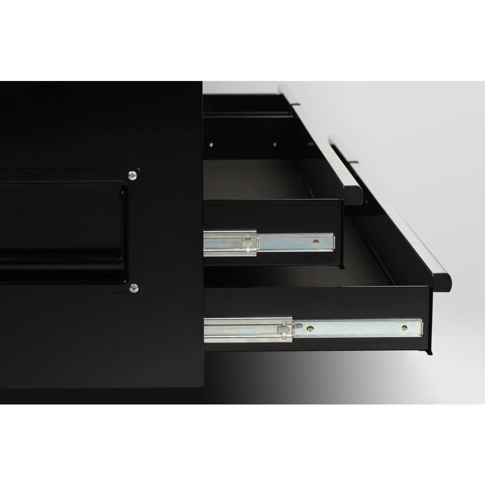 • Full extension ball bearing drawer slides support up to 100 lbs. and feature secure latch retention system that ensures your drawers are completely closed and secured