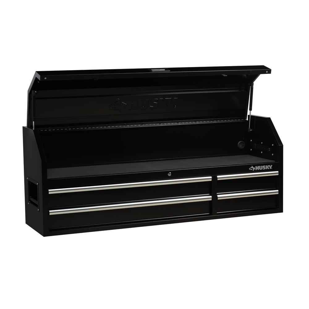 61 in. W x 15.8 in. D 4-Drawer Tool Chest with Power Strip in Black