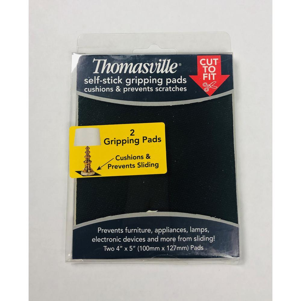 The Thomasville Self-Stick Gripping Pads contain 2-pieces which cushion and prevent sliding and scratches on the surface. These gripping pads can be used on furniture, appliances, lamps, electronic devices and more. The gripping pads are 4 in. x 5 in. and can be cut to fit necessary size.