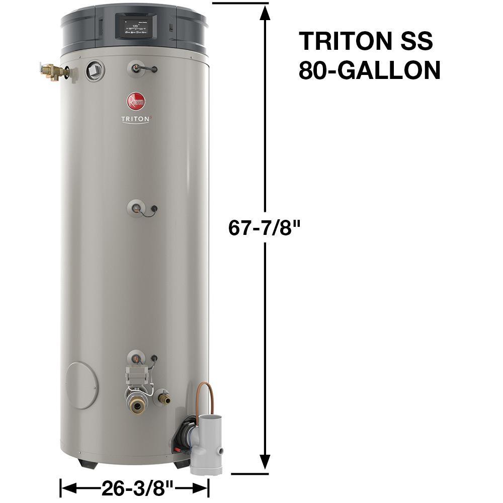 Experience the Triton Advantage: (1) Eliminate the Emergency, (2) Easy Retrofit, (3) Built to Last. The Triton is the most intelligent high efficiency commercial gas water heater in the market. Eliminating the emergency Eliminates Business Downtime. Designed for Versatility, Trition Makes for easy retrofits and new installs; it's designed to replace any other commercial gas water heater. Finally, Triton is built to be more Durable; it's built to last 5 years longer than the industry standard--saving you more than $4500 on replacement costs. SS Premium model also includes: LeakGuard leak detection and protection (via auto shut-off valve)Integrated BMS connectivity BACnet (MS/TP) Energy and Water Usage Reports Upgraded warranty to a 5-year Warranty.