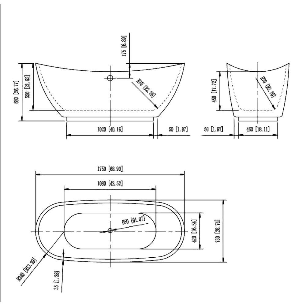 • 68.9 in. L x 28.74 in. W x 26.77 in. D, effective tub capacity: 58 Gal. US and Canada cUPC certified