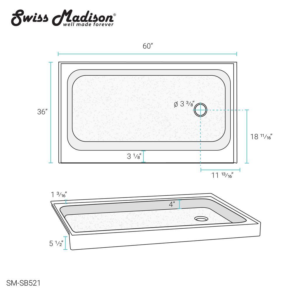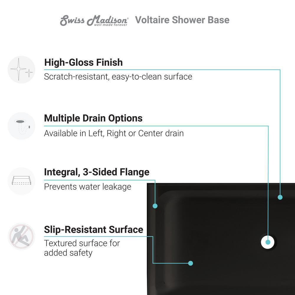 Voltaire 60 in. x 36 in. Acrylic Single-Threshold Right Drain Shower Base in Black