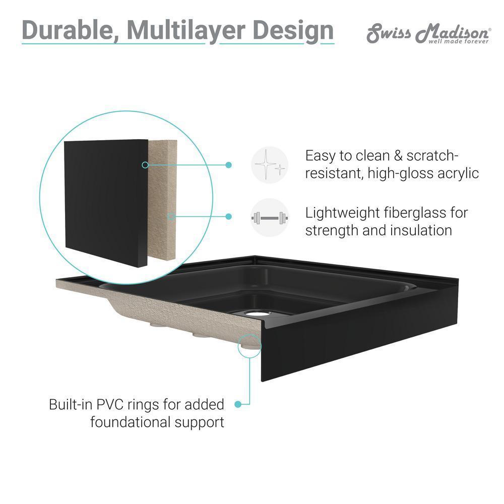 The Voltaire Shower Base is a powerful and stylish statement in any bathroom. Its practical design and low threshold provide easy access to the shower. The durable acrylic and fiberglass reinforcements make the black shower base a robust selection.