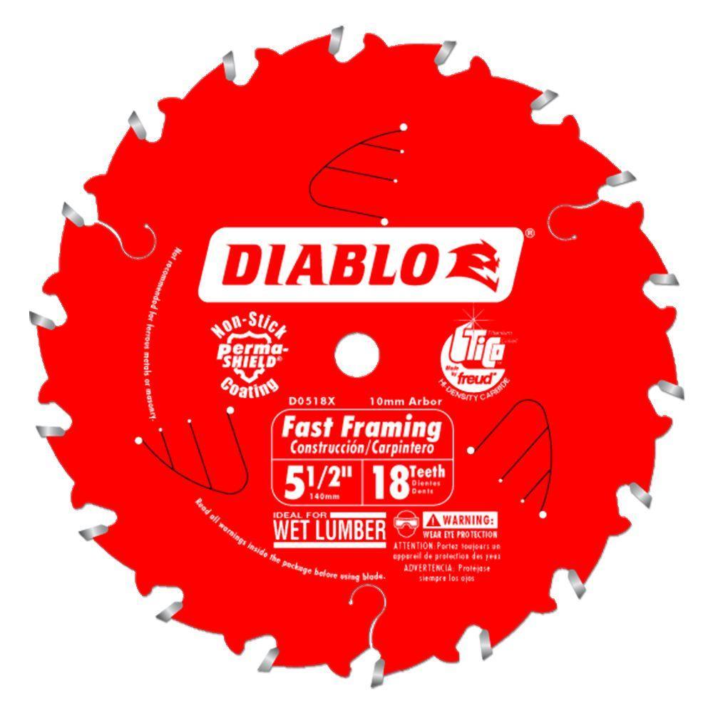 The Diablo 4-1/2 in. x 24 Tooth Framing Circular Saw Blade makes clean, straight cuts on planks even if they are rain-dampened, keeping your construction project on time and on budget. The Perma-SHIELD nonstick coating on this carbide blade keeps it spinning true while stabilizer vents minimize vibration for smooth operation.