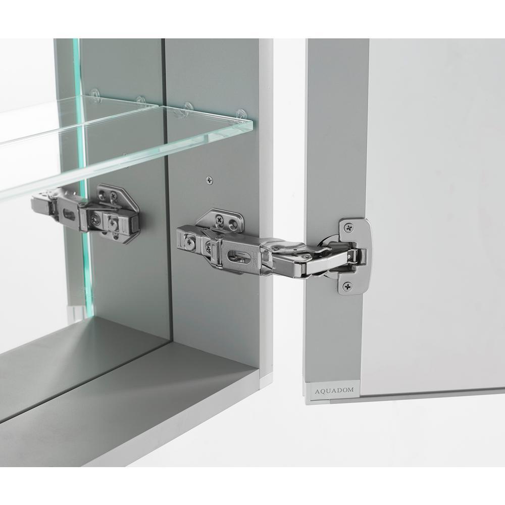 New and improved exciting features were added to the Aquadom Flag Ship model medicine cabinet Signature Royale . Built from stronger, tougher, scratch resistant aluminum. The mirror on the door was also increased to a whopping 5mm thickness for durability and great style. All Aquadom medicine cabinets can be recessed or surface mounted with the side mirrors included at no extra charge. The new SR model will feature 3D, Triple Color Temperature Lighting (cool light, warm light, and combination of cool and warm mixed). Each light has a built-in dimmer on it. As always, our LED digital clock comes standard in the Signature Royale. The interior light is now a beautiful inline LED light. Of course, the Signature Royale model as always comes with a automatic defogger, so the mirror does not get steamed in the shower as well as an interior electrical outlet and USB charging ports. The Signature Royale medicine cabinet is now available in 12 different sizes, please make sure to view all the available sizes and select the one that suits you best.