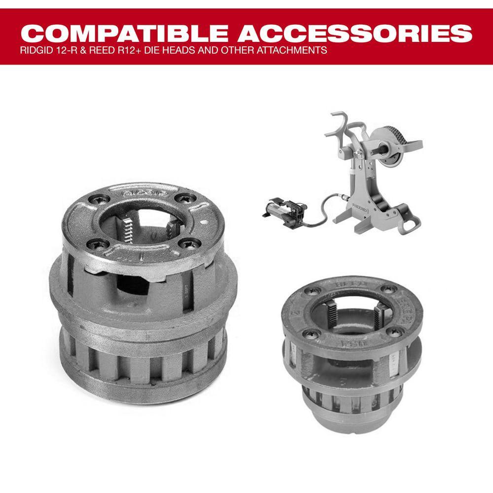 The Milwaukee M18 FUEL Pipe Threader with OneKey is the industry’s first cordless pipe threader, revolutionizing pipe threading. The cordless pipe threader has AutoStop technology that senses severe kickback and automatically shuts the tool off. It also has a die head retention lock preventing die head ejection and an in-line side grip to eliminate the need to hold the spinning die head when starting threads. The portable pipe threader delivers unmatched tool control and functionality allowing faster threading than corded competitors. Featuring a multi-speed selector, this powerful pipe threader threads faster than the corded competition, maximizing productivity without compromising thread quality. The M18 REDLITHIUM high output HD12.0 battery delivers unmatched run-time in all applications and delivers the power to thread up to 2 black iron pipe, stainless steel, and rigid metal conduit (RMC). The handheld pipe threader is compatible with ONE-KEY Technology and is the industry's first pipe threader that wirelessly connects to a smartphone to track the tool's location, manage it in inventory, and lock the tool out for added security and investment protection. In addition to the threader, the kit includes 2 M18 High Output HD12.0 Battery Packs, an M18/M12 Rapid Charger, a Threading Support Arm, and a Carrying Case.