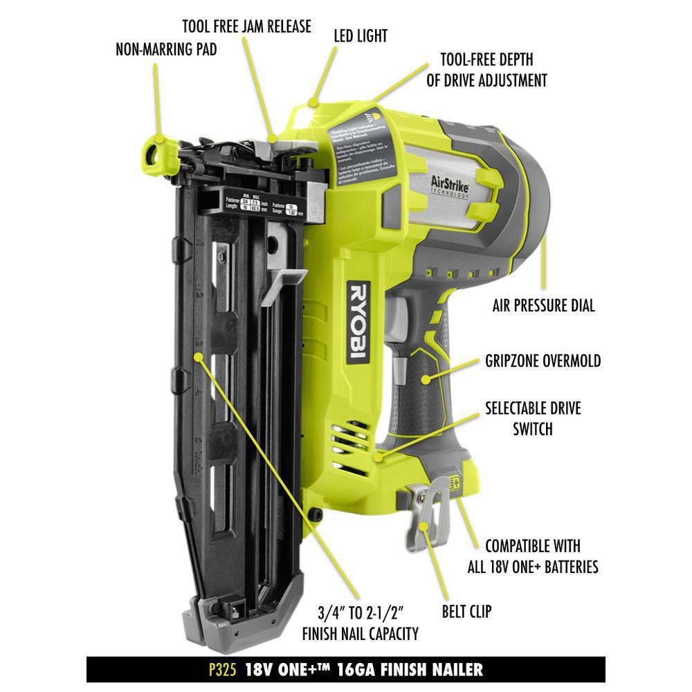 Straight Finish Nailer: Drives 16-Gauge nails from 3/4 in. to 2-1/2 in. long