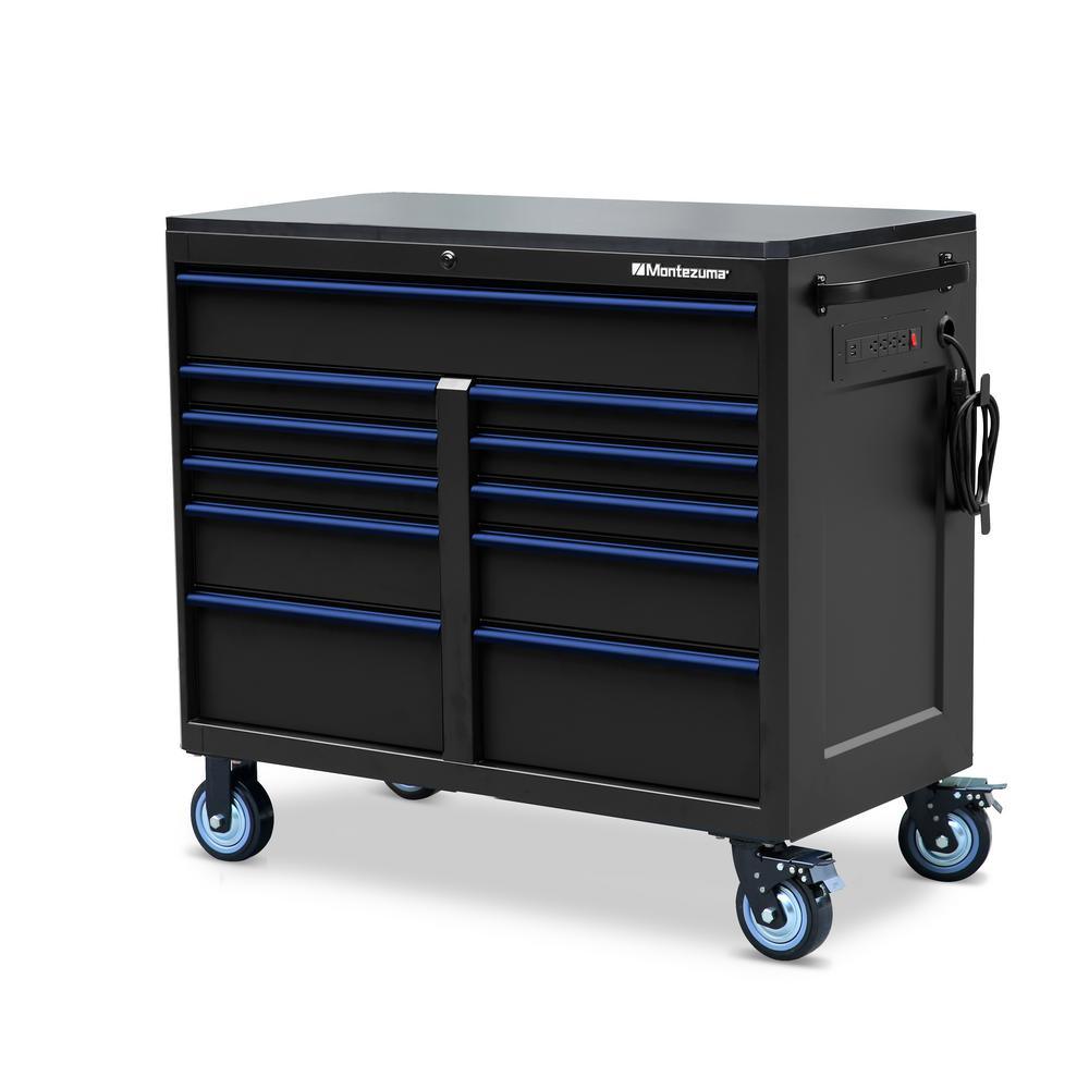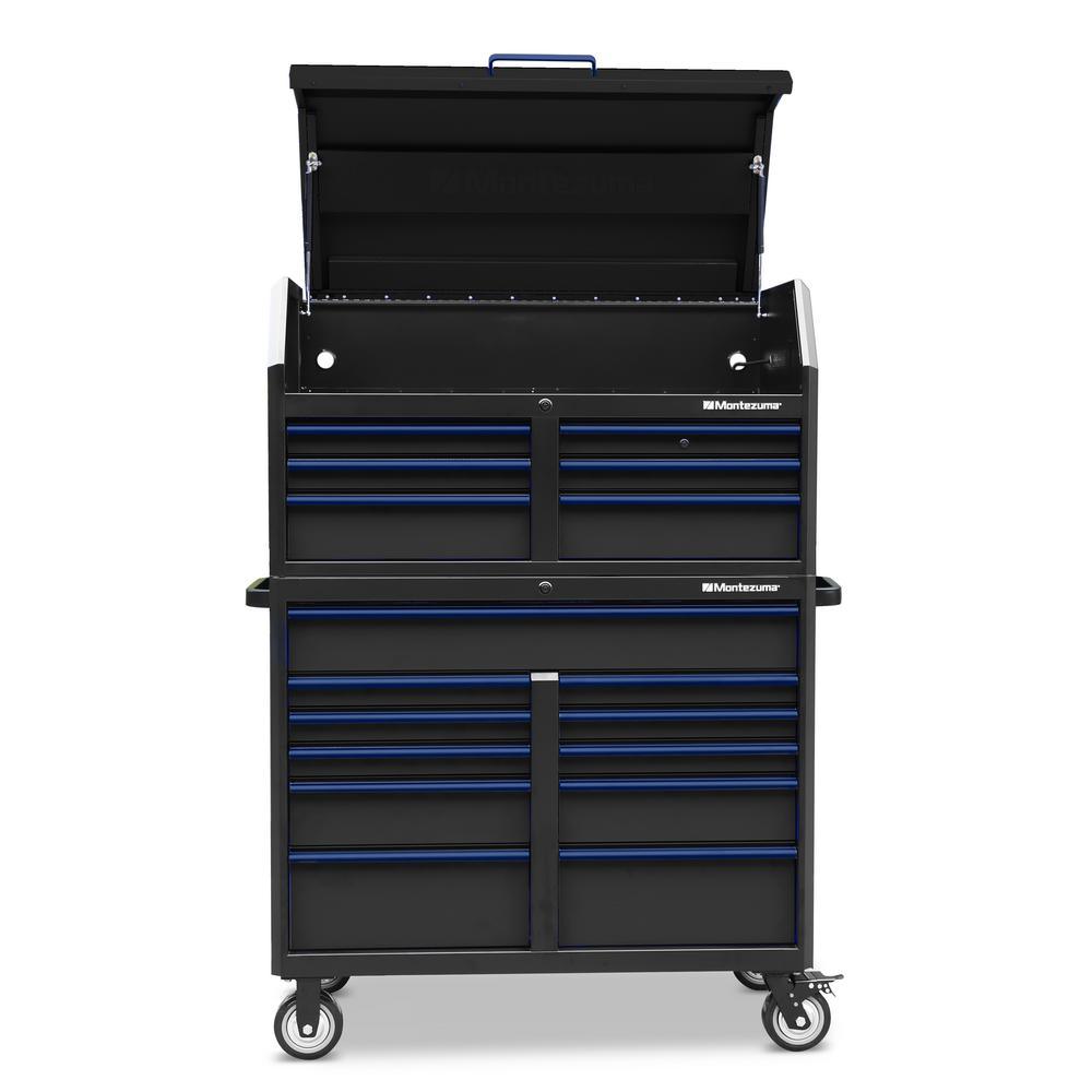 24 in. x 46 in. 17-Drawer Tool Chest and Cabinet Combo with Power and USB Outlets in Black and Blue