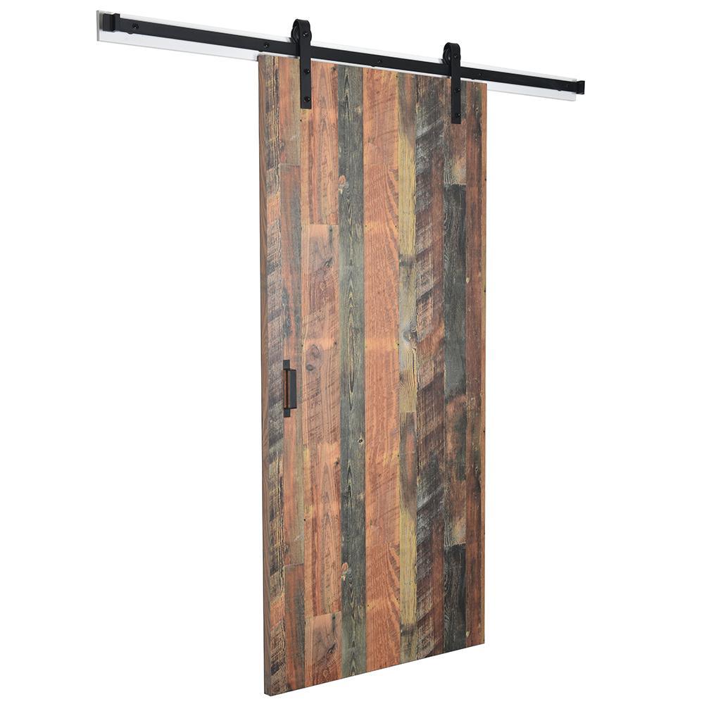 37 in. x 84 in. Antique Bourbon Pine 8215-12 Solid Core Wood Flush Barn Door with Sliding Door Hardware Kit