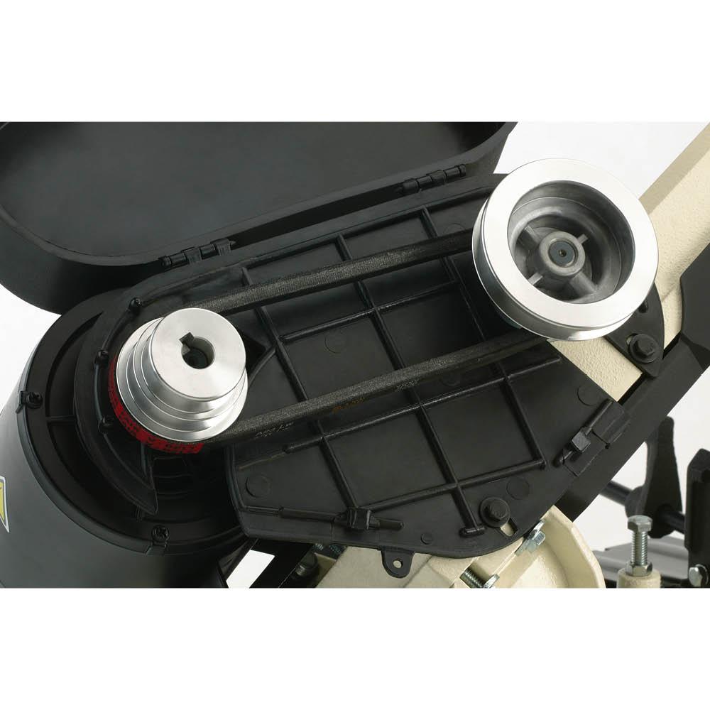 A bandsaw is a must for any metal shop. The M1013 has 3 speeds, an automatic shut-off, ball-bearing blade guides and many more important performance features. As an added bonus, it has a swiveling headstock, so there is no fussing with establishing the cut angle at the vise. Just set the workpiece length, swivel the headstock to an angle between minus 45° to plus 60° and make the cut.