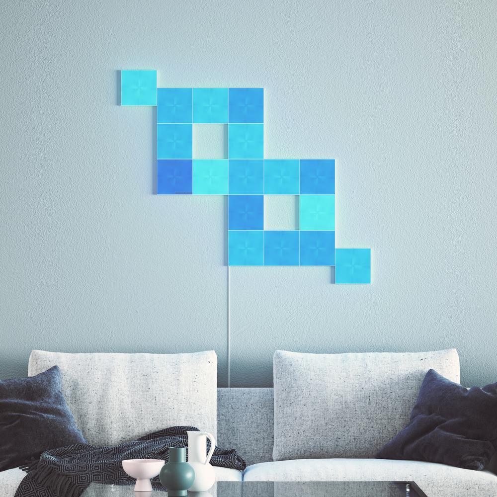 With a multi-touch control you can operate the light squares by touching them with your palm. Play touch games, including classics like Whack-A-Mole, Pacman and Canvas Crush. Personalize touch commands in the Nanoleaf App so that the light squares react exactly how you want (double tap or swipe can activate on, off, change Scene or adjust brightness). A revolutionary edge-lit design that maximizes the entire surface area of each Canvas square, the purposeful design eliminates any dark spots and maximizes use of materials for optimal efficiency. Use the Canvas squares to cover an entire wall and ceiling, or opt for more artistic pixel art designs, the choice is yours. Equipped with color-changing and adjustable white lighting to fit any lighting needs throughout the day. The Canvas comes with hundreds of pre-loaded Scenes that you can use even without a Wi-Fi connection. The control square with its touch buttons offer quick manual control so without the Nanoleaf App, the user still has full control. Fully customize your lighting inside the free Nanoleaf App (Android and iOS), create scenes, set schedules, or download/share your scenes with the user community. You choose the colors and their movements. Designed to play well with other Smart Home ecosystems. Activate scenes through the control square, programmed touch gestures, or your voice via Apple HomeKit, Amazon Alexa, Google Assistant, the Nanoleaf App or IFTTT.