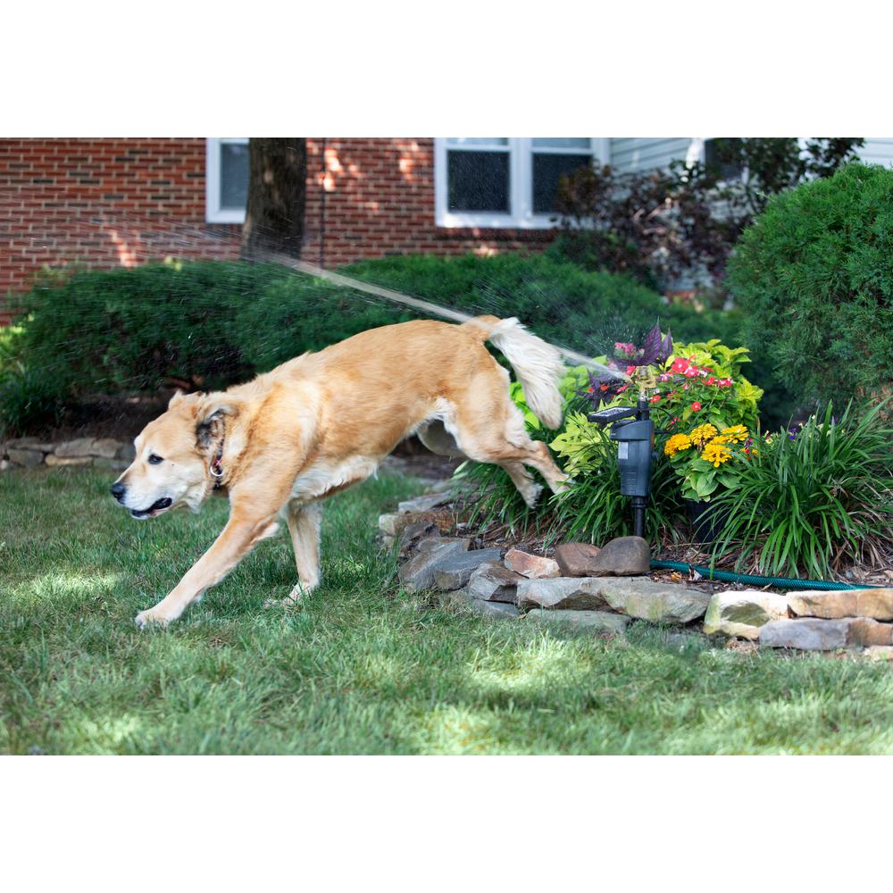 - Adjustable motion sensor and sprinkler head let you set the detection and spray range