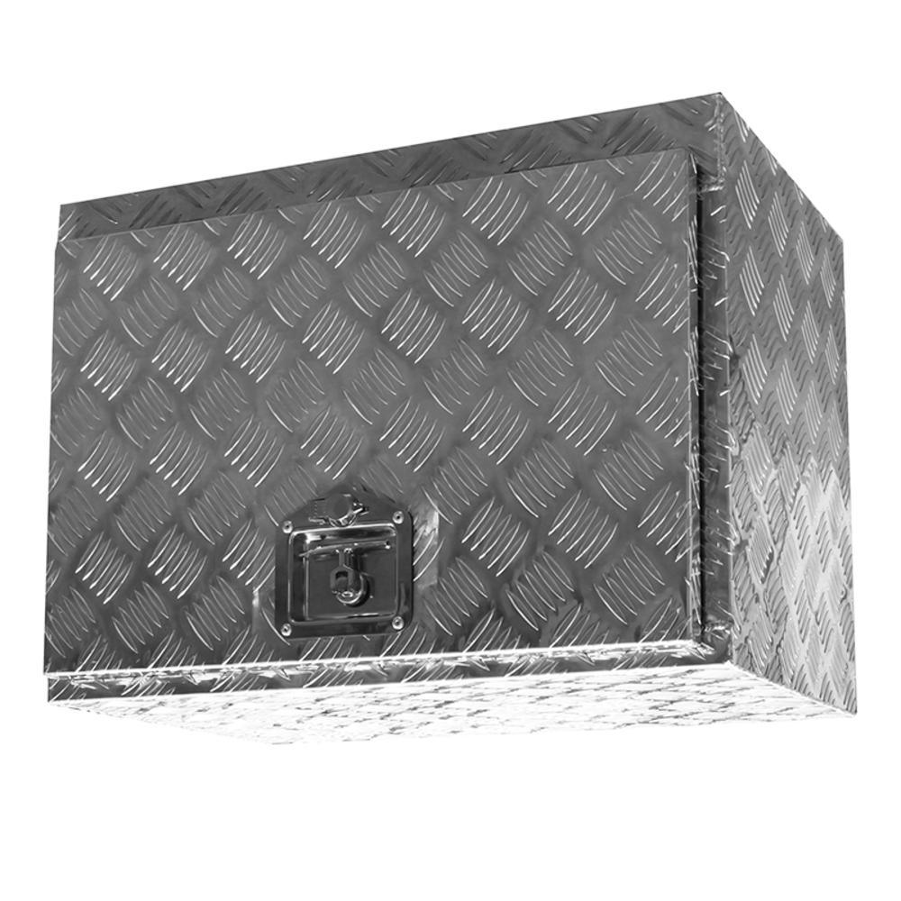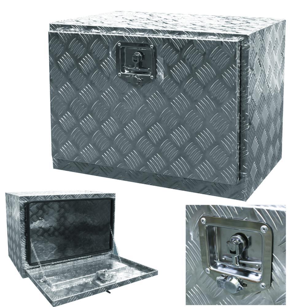 The XtremepowerUS Aluminum Truck Bed Tool Box Storage is designed to save space and provide extra storage under your truck bed. This tool box is constructed of heavy-duty textured aluminum for maximum durability. The door is reinforced with a weather-resistant seal for keeping your tools and items dry and safe. Fold down door provides full access. Built-in lock ensures all items are kept safe and secure. This aluminum underbody tool box is perfect for storing your tools in your vehicle or at home.