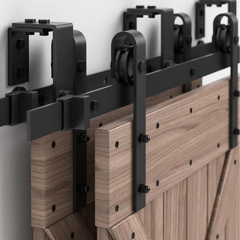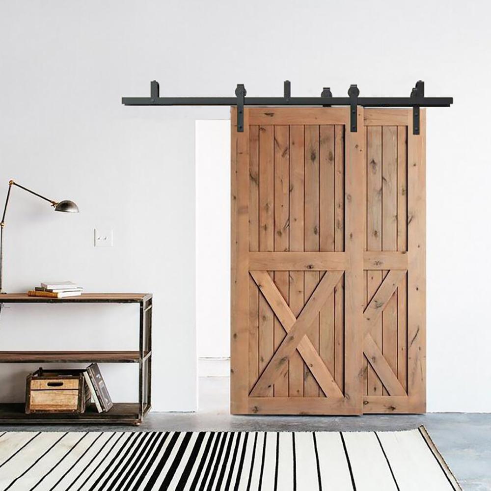 6 ft./72 in. Powder Coated Black Heavy-Duty Bypass Double Door Sliding Barn Door Hardware Classic Design Roller