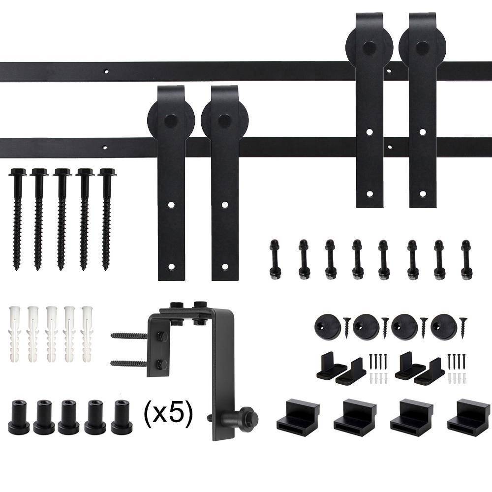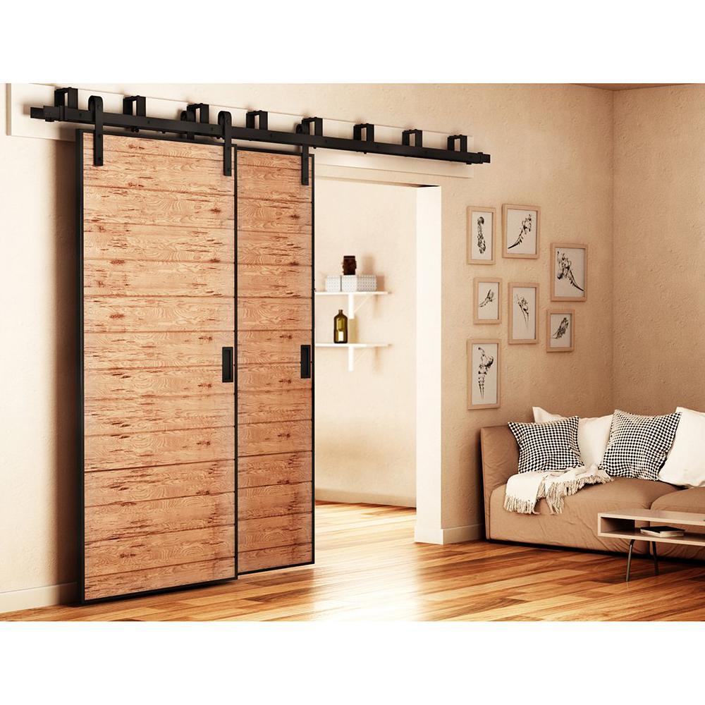 6.6 ft./79 in. Powder Coated Black Heavy-Duty Bypass Double Door Sliding Barn Door Hardware Classic Design Roller
