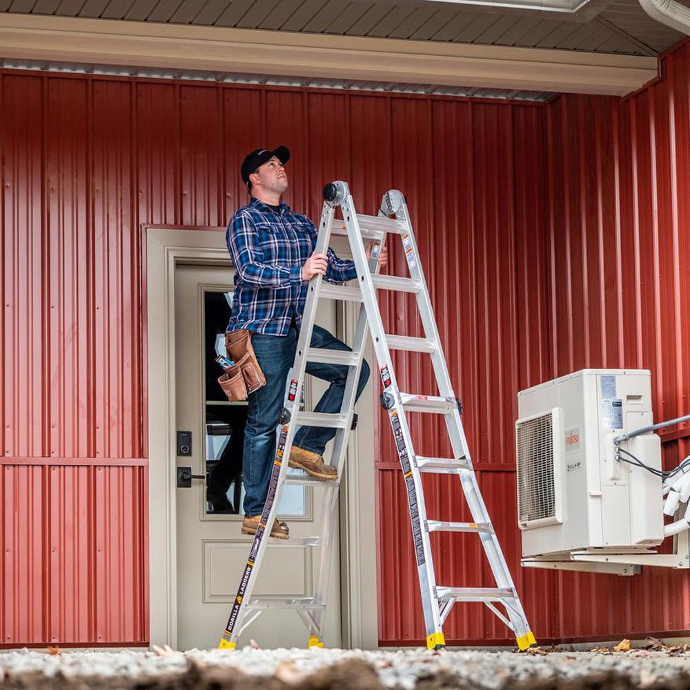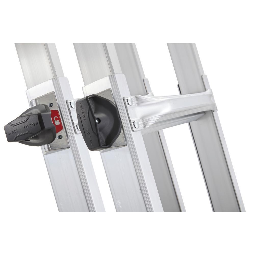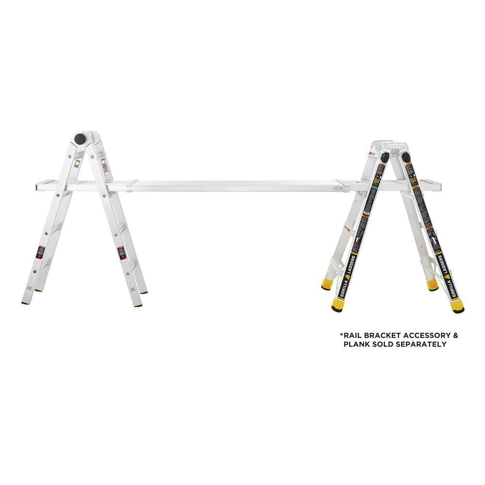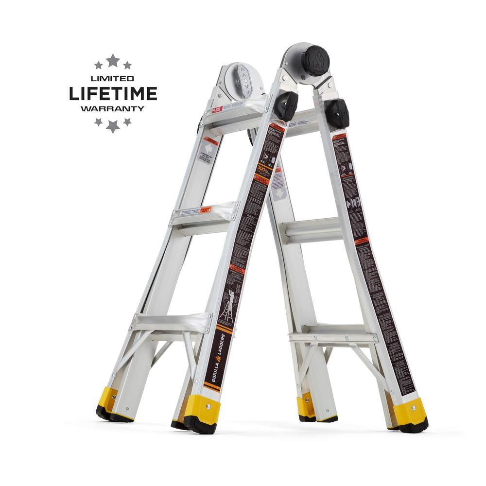 LIGHTER, STRONGER, EASIER the newly designed Gorilla Ladders 18 ft. Reach MPXA Aluminum Multi-Position ladder combines versatility, safety and strength. With 20 telescoping adjustable heights, this ladder can be used as an Extension Ladder, Double-Sided Twin Stepladder, 90° Wall Ladder, Stairway Stepladder and as 2 Scaffold Bases with the purchase of the MPX Rail Brackets. Easily adjust the height from all sides with 1 hand with the user-friendly speed locks. The extra-large, heavy-duty MPXA hinges give you improved strength with less flex and sway for safer climbing. The innovative rail design makes the MPXA ladder lighter weight yet stronger than comparable models. This Gorilla Ladders 18 ft. Reach MPXA Multi-Position Ladder is the next generation of safe, strong, innovative and versatile climbing products that is perfect for all your project needs.
