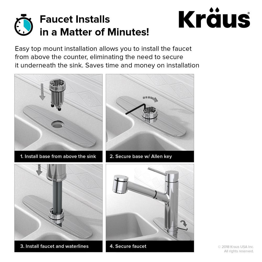 • KRAUS finishes resist corrosion and rust, surpass industry durability standards, and will not fade over time