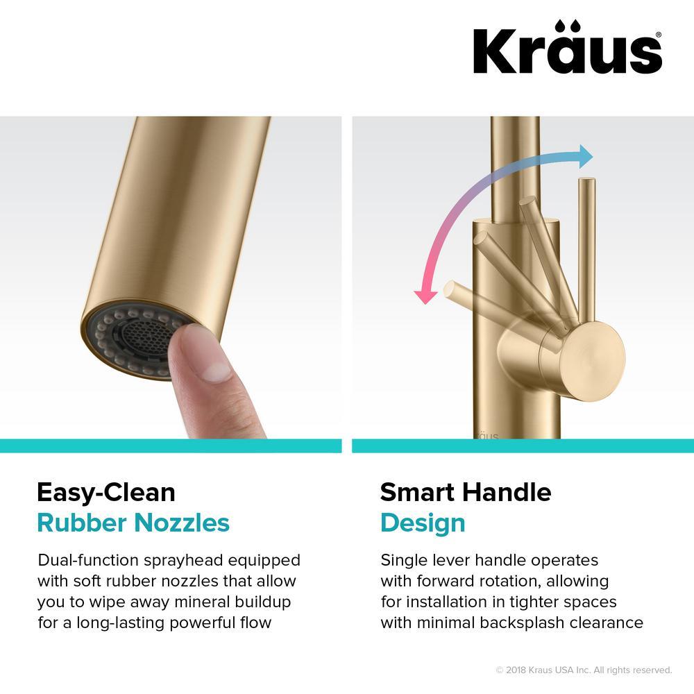 Give your kitchen a quick modern makeover with the easy-to-install Oletto pull-down faucet from KRAUS. Clean lines and a streamlined design create maximum visual impact when paired with any kitchen sink. Reach technology offers smooth spray head movement with an optimized range of motion, allowing you to access every hard-to-get spot in and around the sink. All Oletto Series faucets are designed with a QuickDock mounting assembly for exceptionally fast and simple top mount installation. Experience Oletto, and build a better kitchen with KRAUS.