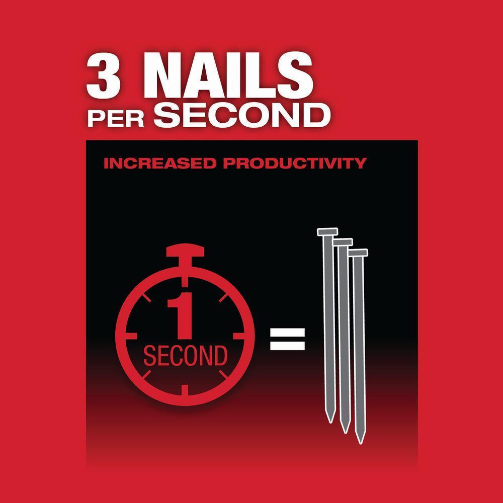 The Milwaukee M18 FUEL 30° Framing Nailer Kit sets the new standard for cordless framing nailers. By leveraging a nitrogen spring mechanism, POWERSTATE brushless motor and REDLINK Intelligence, this nailer provides users with pneumatic performance and the convenience and freedom of cordless power. Delivering the power to sink full round head nails into dense engineered lumbers, this framing nailer enables users to tackle even the most demanding framing applications. To keep users productive and efficient throughout the day, the framing gun fires 3 nails per second with zero ramp-up time, meaning a nail is fired as soon as the user pulls the trigger. Additionally, the cordless framing nailer operates using only Milwaukee's REDLITHIUM Batteries and sealed compressed nitrogen to drive each nail, completely eliminating the cost of gas cartridges and maintenance associated with competitors' nailers. The M18 FUEL 30° Framing Nailer delivers the pneumatic performance and durability that professional carpenters and remodelers expect, without the hassle of a compressor and hose or gas cartridge. In addition to the framing nailer, this kit includes one M18 REDLITHIUM XC5.0 battery pack, an M18 and M12 Multi-Voltage Charger, a rafter hook, non-marring tip and a contractor bag.