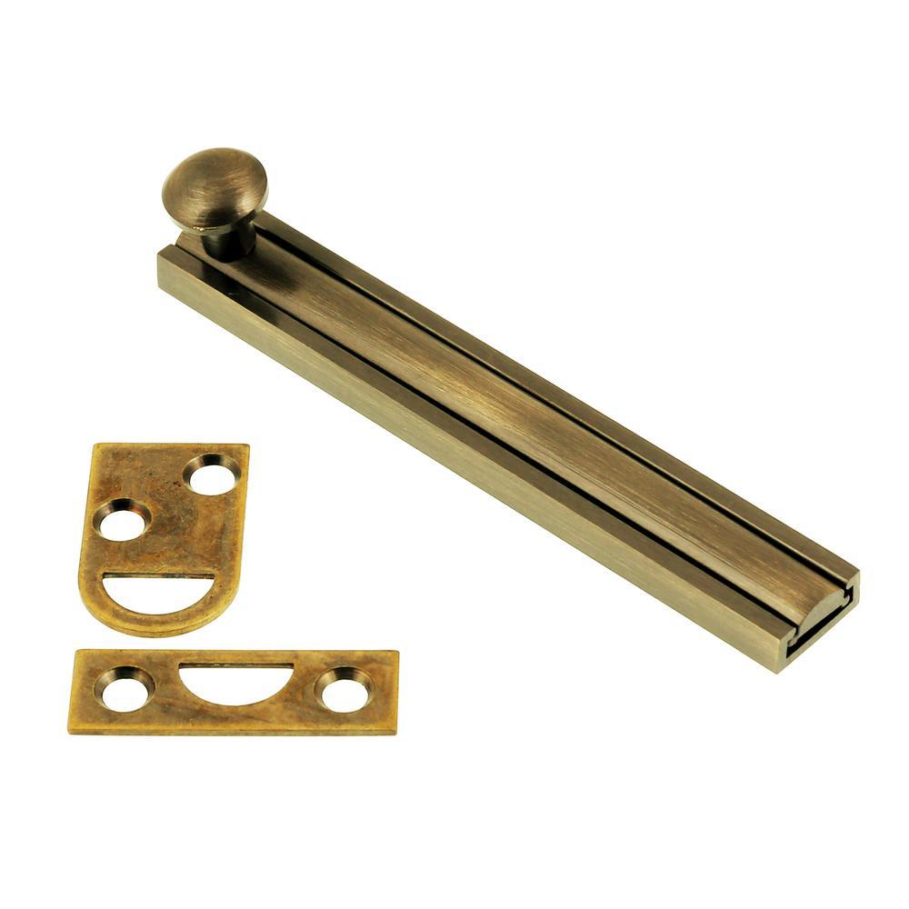 The sleek form factor of the 4 in. Solid Brass Surface Bolt from idh by St. Simons makes it the perfect addition to your door and window hardware. This smooth sliding bolt features a tension spring on the bottom, which keeps the surface from being damaged or marred. It can be easily installed to complement any decor, whether classic or contemporary. Beautifully crafted from 100% solid brass, its versatile uses include securing doors, windows, cabinets, or as a horizontal privacy bolt. Demand Quality. Demand idh.