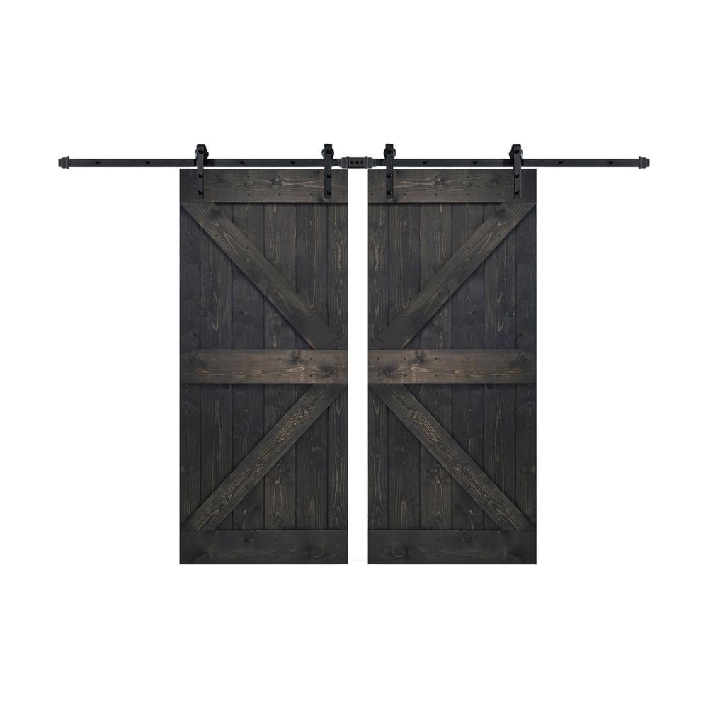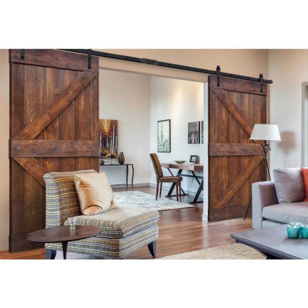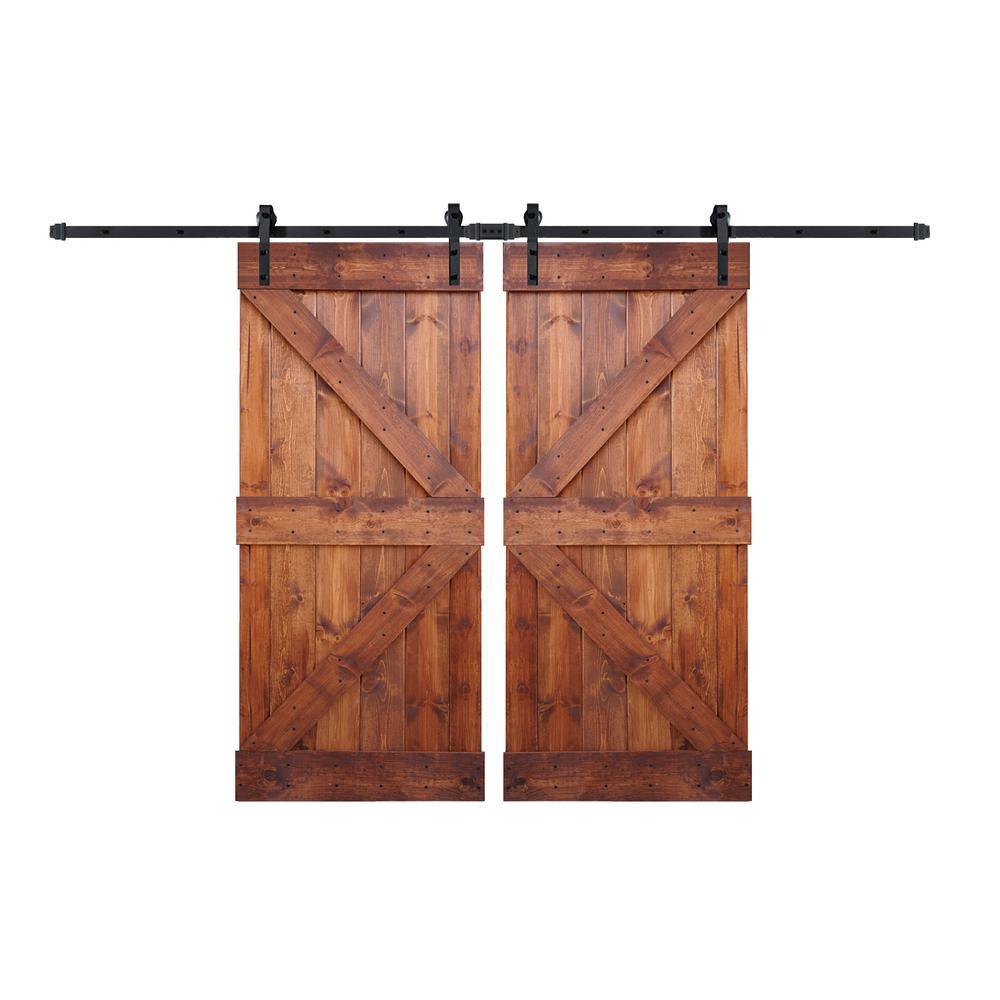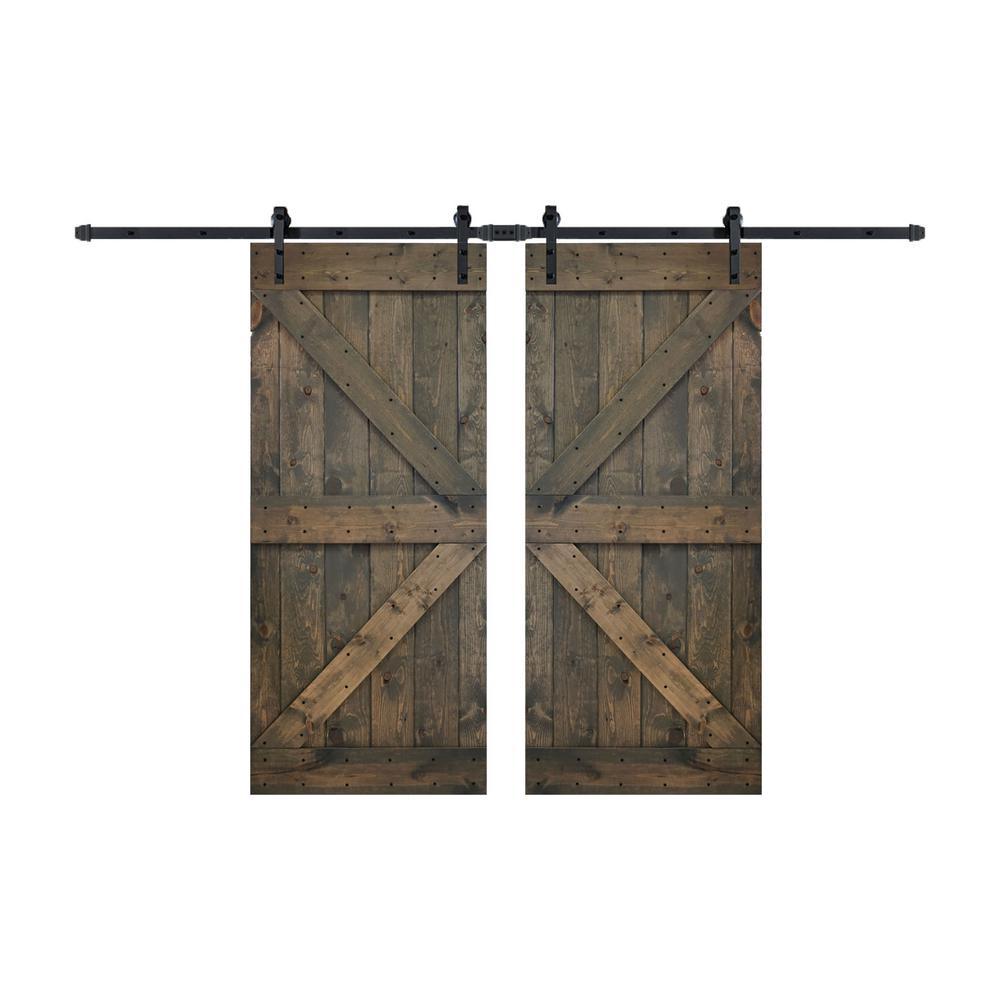 72 in x 84 in K Series Dark Walnut DIY Finished Knotty Pine Wood Double Sliding Barn Door Slab with Hardware Kit