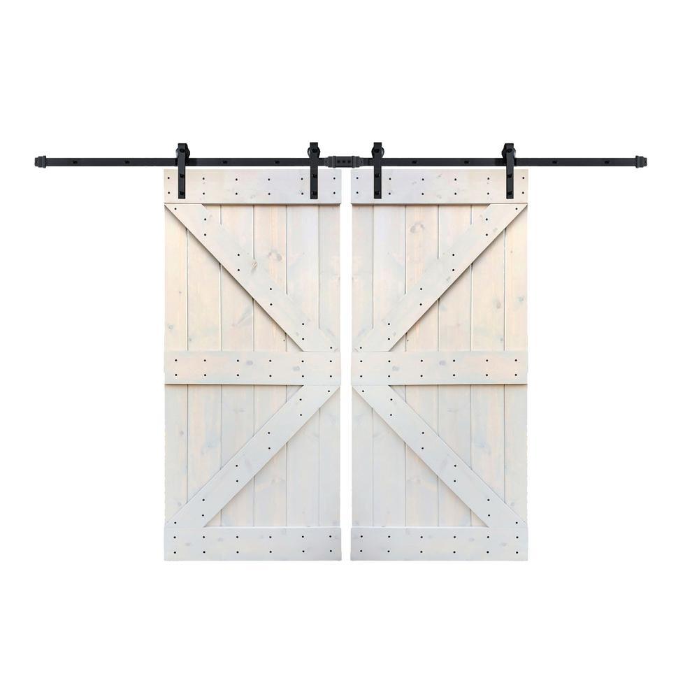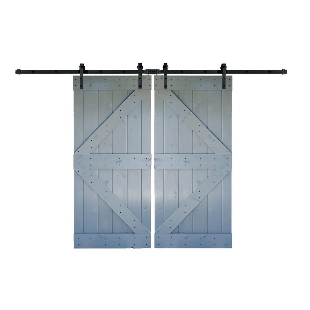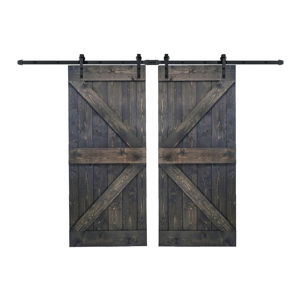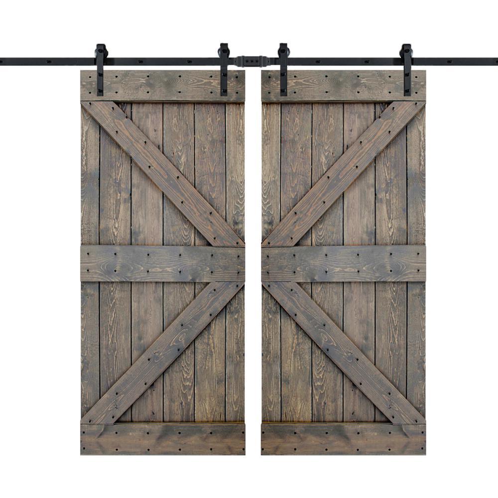 72 in x 84 in K Series Dark Walnut DIY Finished Knotty Pine Wood Double Sliding Barn Door Slab with Hardware Kit