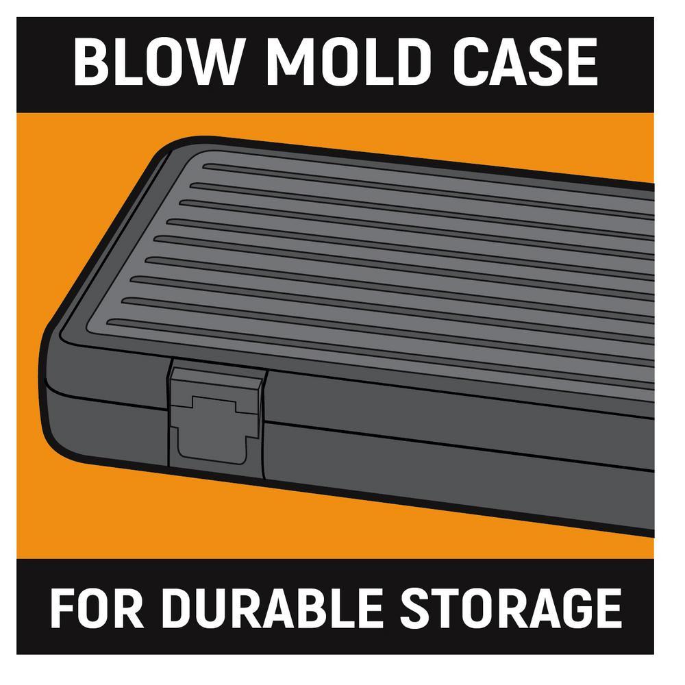 • Includes blow mold case with reinforced steel hinges and steel buckles for strength and security