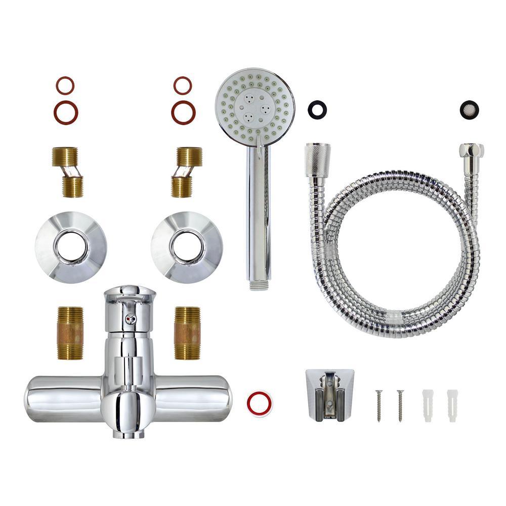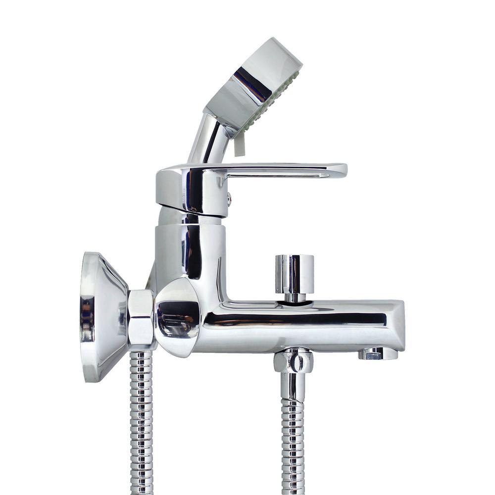 - Lever style 6 in. tub and shower mixer with massage hand held shower set includes tub and shower mixer, 72 in. extra-long shower hose, porcelain hand shower, and brass shower wall mount