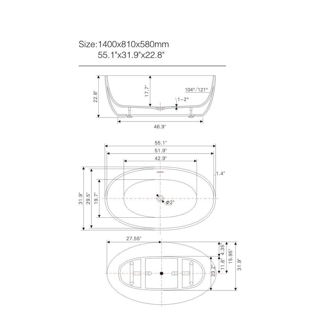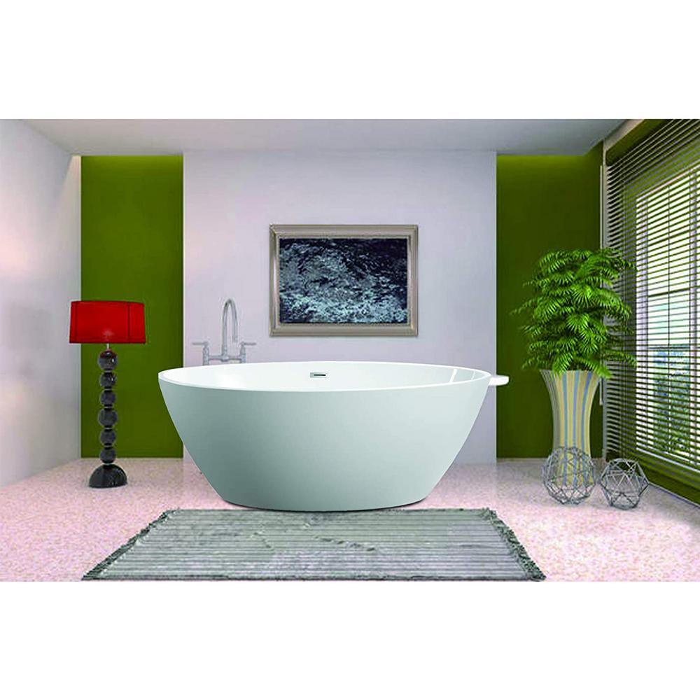 Calais 55 in. Acrylic Flatbottom Center Bathtub in White