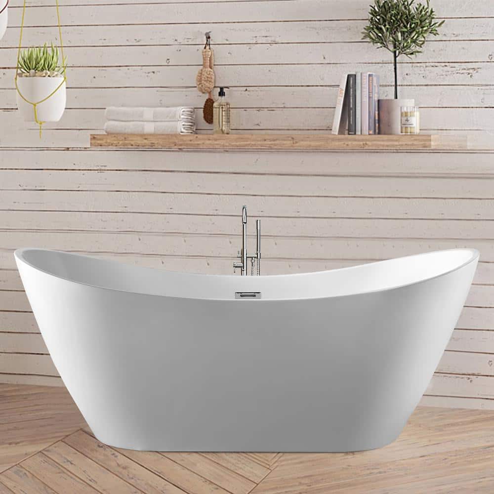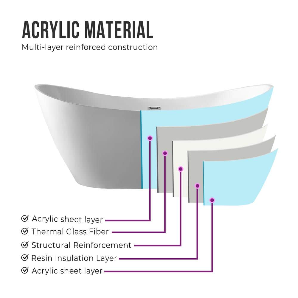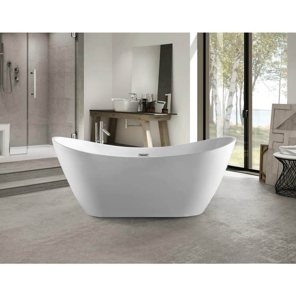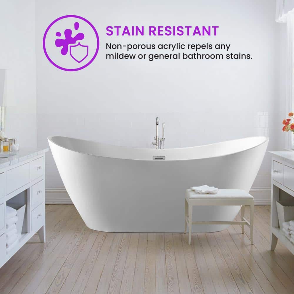 The Reims 71" Acrylic Freestanding Bathtub by Vanity Art offers a luxurious soaking experience like no other. Crafted from durable acrylic, this chic, white tub features a high gloss finish, adding a touch of elegance to any bathroom. Its ergonomic design and easy installation make it a perfect blend of style and convenience.