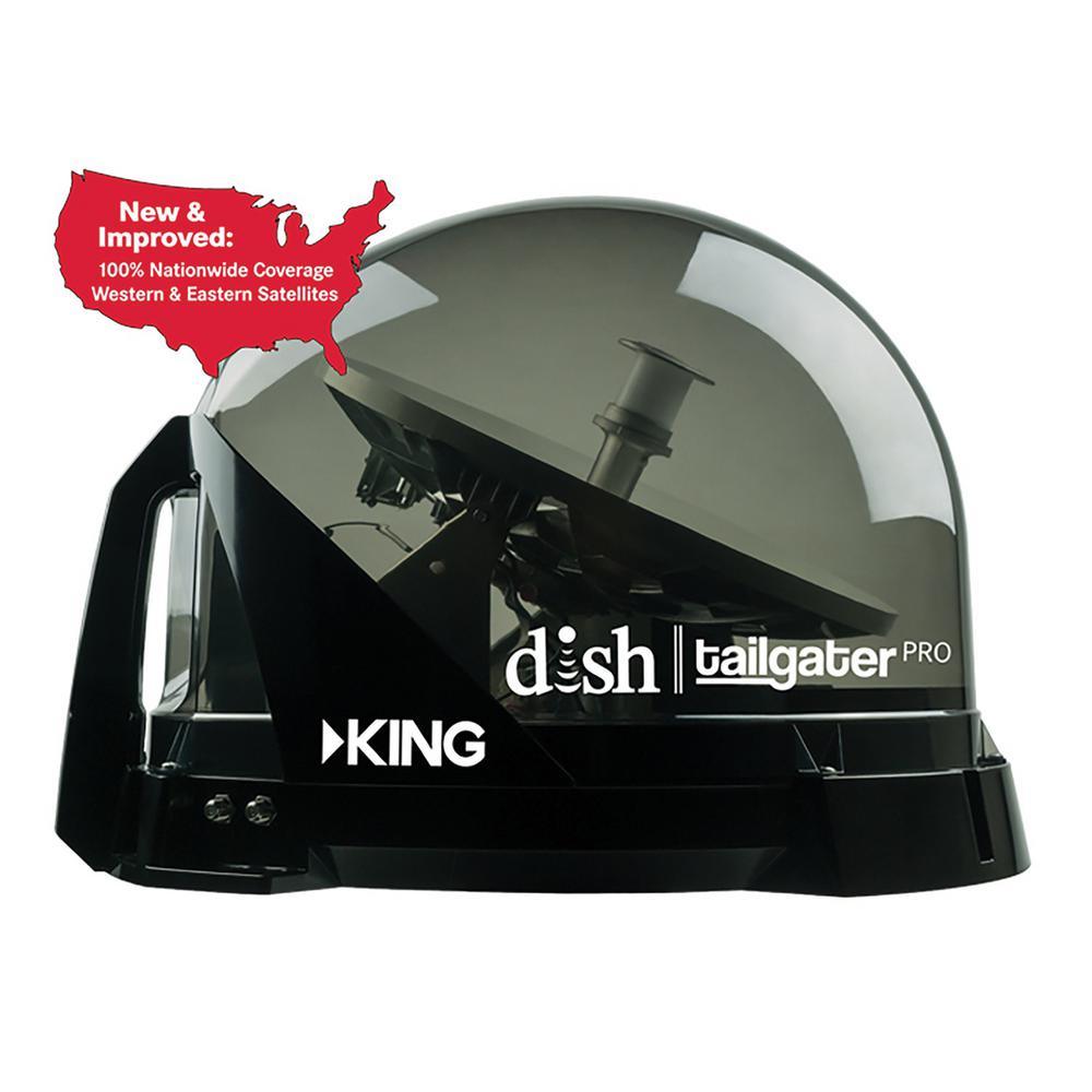 With KINGs next-level satellite antenna technology, your choice for satellite TV is clear. Bring the best entertainment to any outdoor event with the reengineered DTP4950 Dish Tailgater Pro Premium Bundle, a fully automated premium HD satellite TV antenna that includes a Wally receiver. The antenna sports an ultramodern clear cover an industry first so it's simply better, by design. With the Tailgater Pro Bundle, enjoying your favorite HD or SD Dish satellite TV service is easier than ever before. Ideal for RVers, sporting and outdoor enthusiasts, tailgaters, long haul truckers or anyone with an active mobile lifestyle, the Tailgater allows you to take Dish satellite TV service with you anywhere in the continental US. The compatible Wally receiver is included and can also be used with Dish HD Solo receivers (Wally, ViP211z, ViP211k or 411). This system is compatible with Satellites 61.5, 110, 119 and 129, allowing for crystal clear HD for both east and west coast viewers. Compatibility with the 61.5 satellite for northeast HD viewing requires a Wally receiver (included). Add Dish service to your home account or sign up for a simple Pay As You Go monthly programming plan.