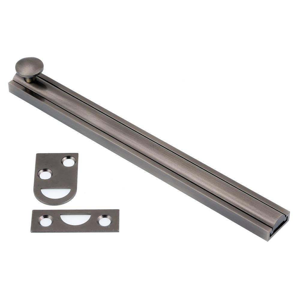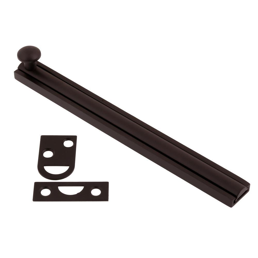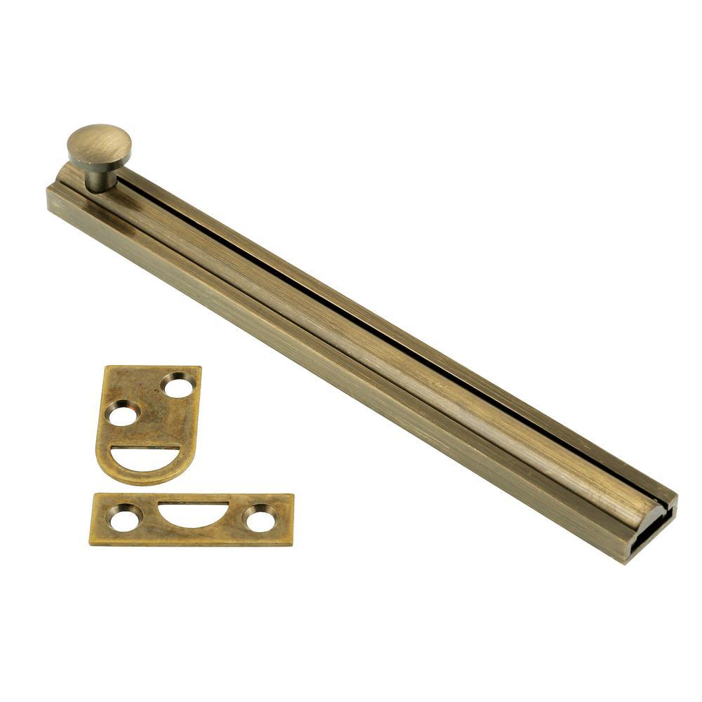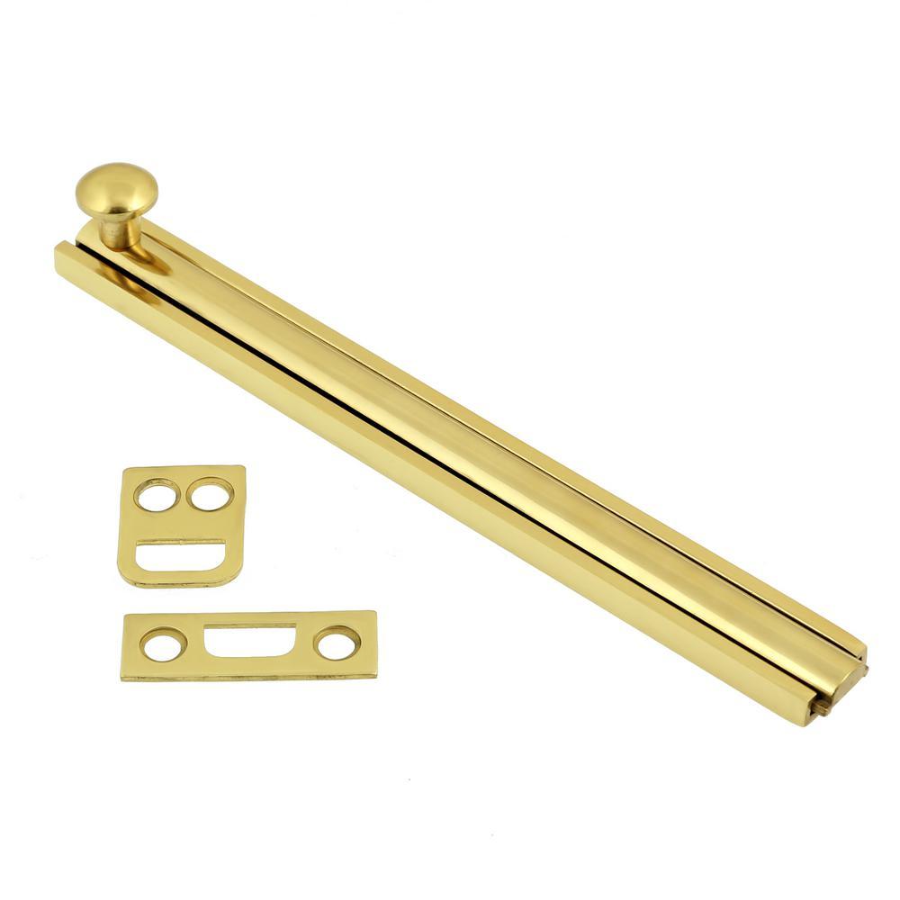 The sleek form factor of the 6 in. Solid Brass Surface Bolt from idh by St. Simons makes it the perfect addition to your door and window hardware. This smooth sliding bolt features a tension spring on the bottom, which keeps the surface from being damaged or marred. It can be easily installed to complement any decor, whether classic or contemporary. Beautifully crafted from 100% solid brass, its versatile uses include securing doors, windows, cabinets, or as a horizontal privacy bolt. Demand Quality. Demand idh.