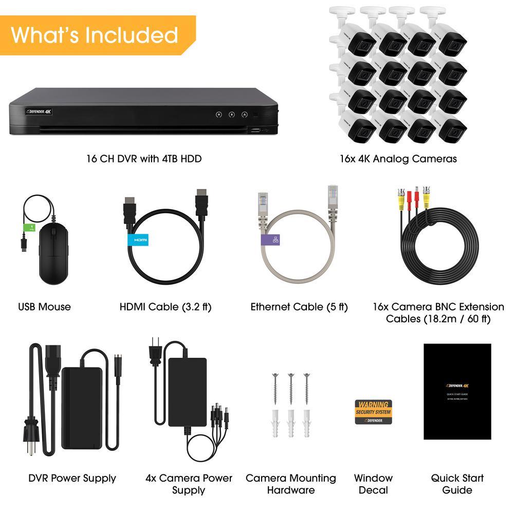 Ultra HD 4K (8MP) 16 Channel 4TB DVR Security Camera System with Remote Viewing and 16 Cameras