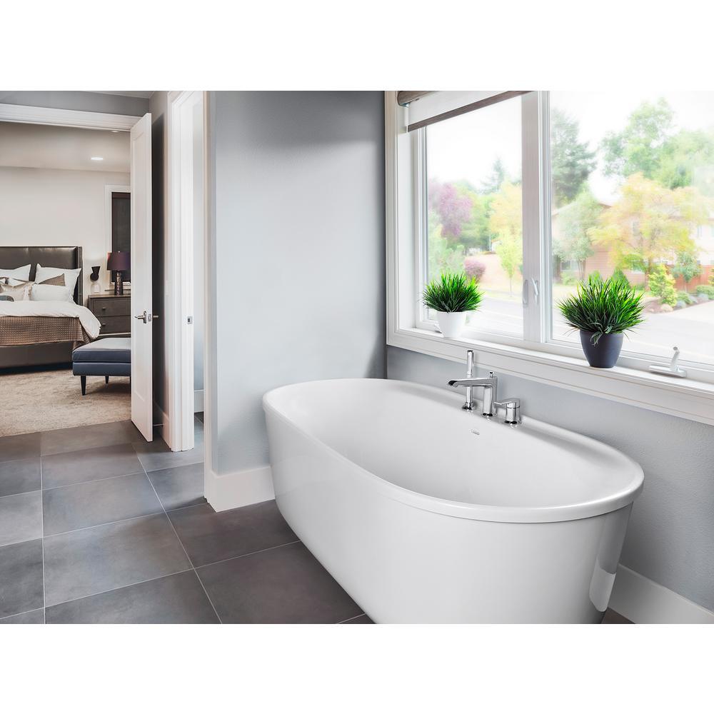 • Wide ledge on 1-side is ideal for deck-mount faucet and/or hand shower
