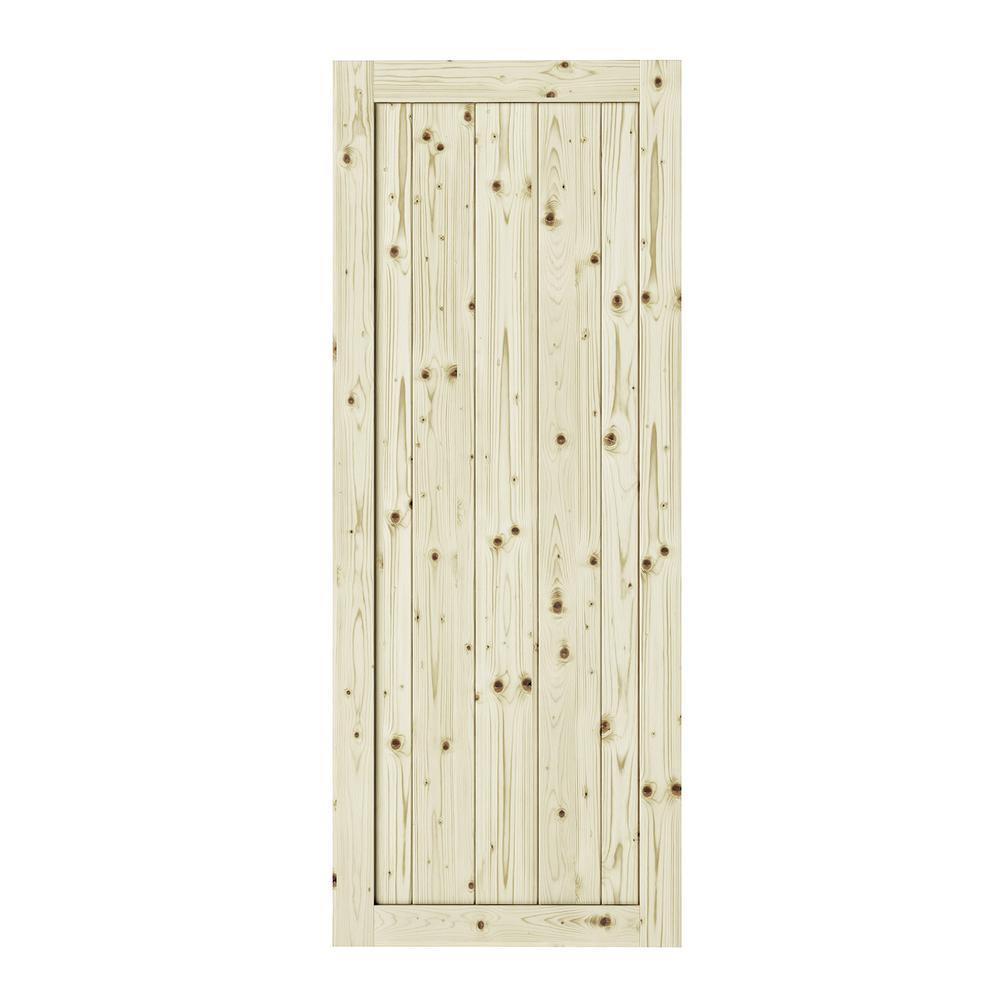 26 in. x 84 in. Rustic1-Panel Unfinished Knotty Pine Interior Barn Door Slab