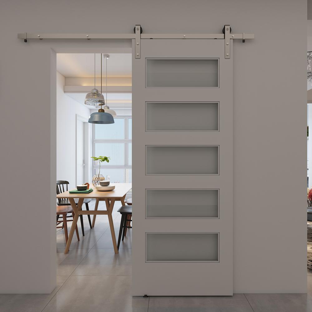 33 in. x 84 in. Unfinished Clear Pine 5-Lite Frosted Interior Barn Door Slab