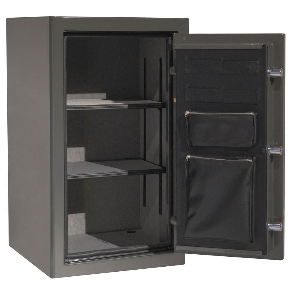 - Heavy gauge steel walls with pry resistant recessed doors that swing 180° for full access to safe interior