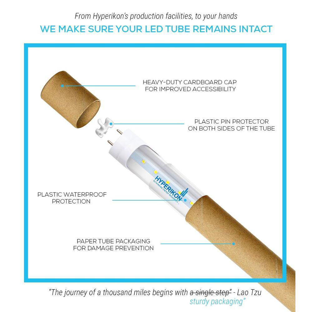 Hyperikon LED Tubes are engineered and constructed with high regard for quality, safety and endurance. They have lower energy consumption and with no mercury or UV/IR radiation. Rotatable endcaps allow the lamp to be adjusted to the correct position for optimum light output.